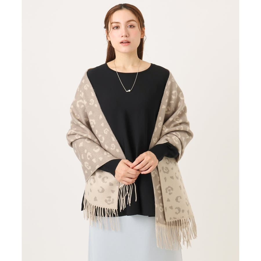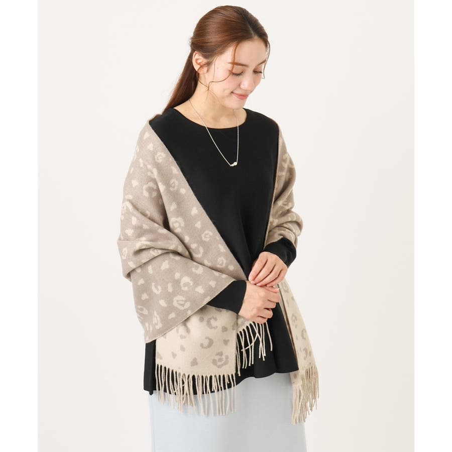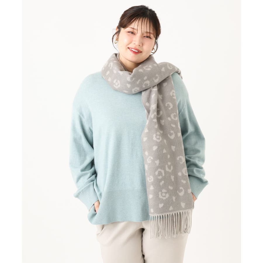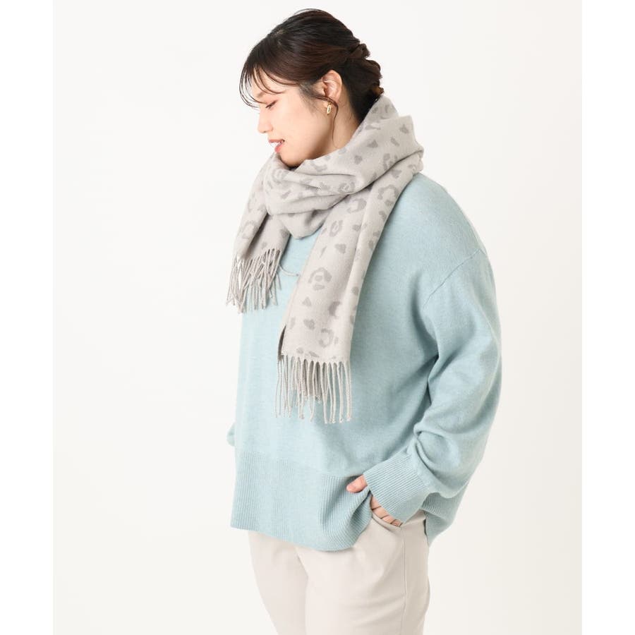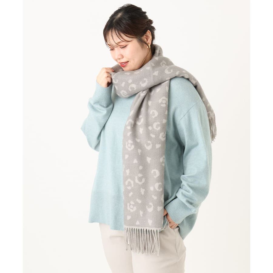 ペールトーンのレオパード柄がスタイリングを柔らかな印象に仕上げる大判マフラー。ソフトな風合いのアクリル100%素材を使用し、ふわっと軽い付け心地ながらもしっかりと暖かみのあるシーズナルなひと品です。巻き方次第でお好みのボリュームアレンジが出来る程よいサイズ感も魅力的なポイント。カジュアルにもきれいめにも馴染むナチュラルカラーで冬のコーディネートのアクセント使いにおすすめのアイテムです。