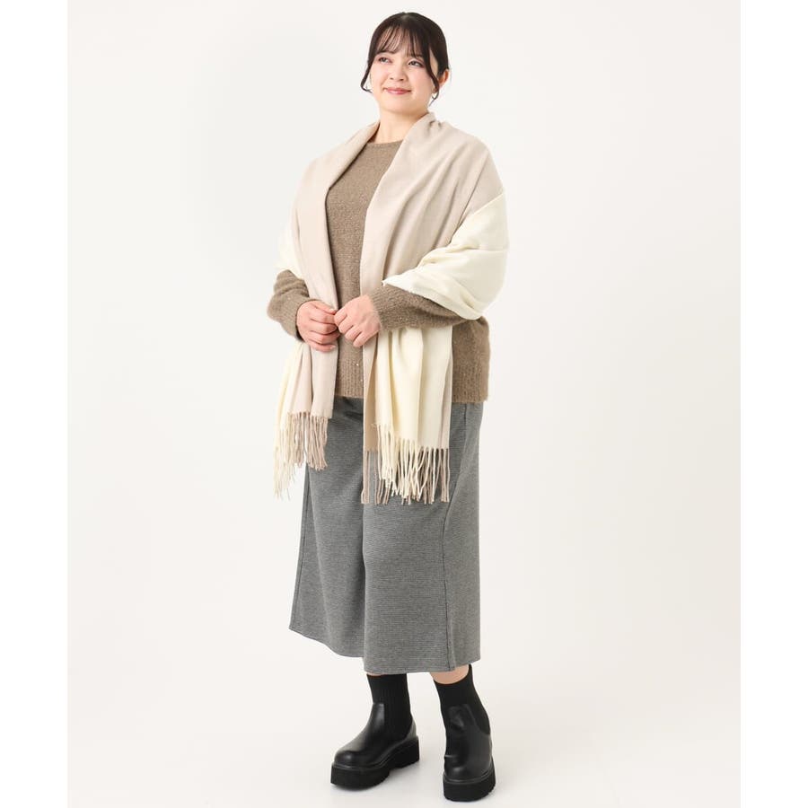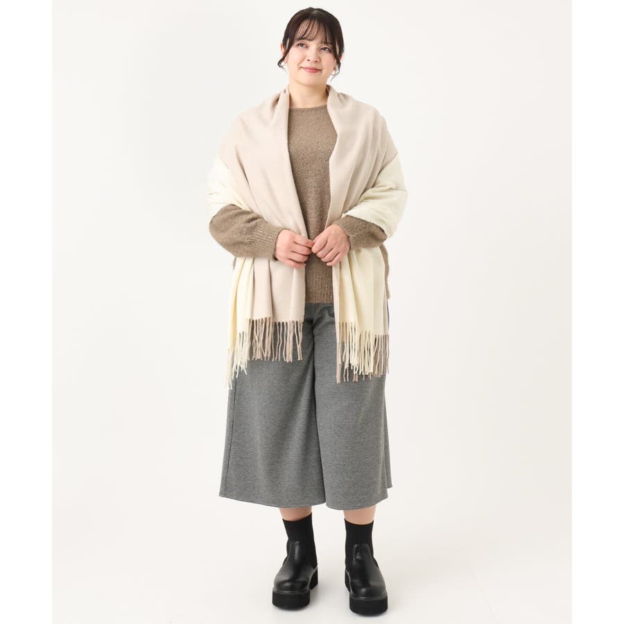 巻き方次第でニュアンスを作り出す大判ストール。同系色で組み合わせたバイカラーデザインで、単色に見せたり両カラー見せたりスタイリングに合わせてお楽しみいただけます。ストールとしてはもちろんショールや膝掛けとしてもおすすめ。どんなスタイリングにも取り入れやすい秋冬シーズンにマストバイな一枚です。