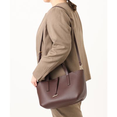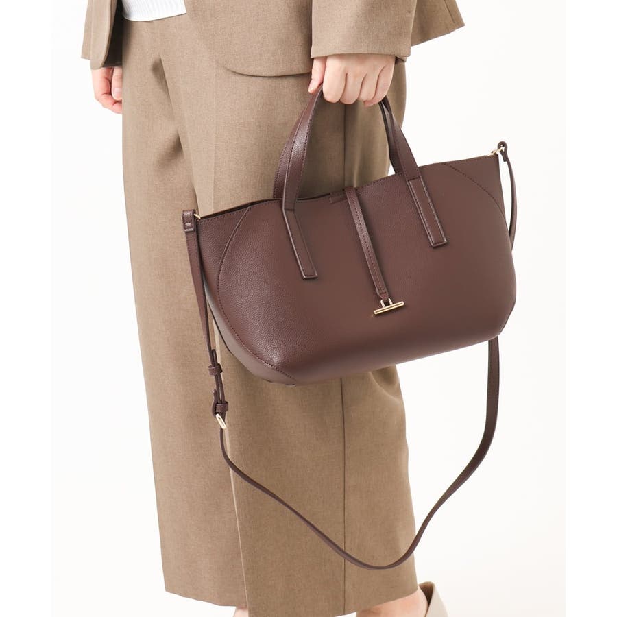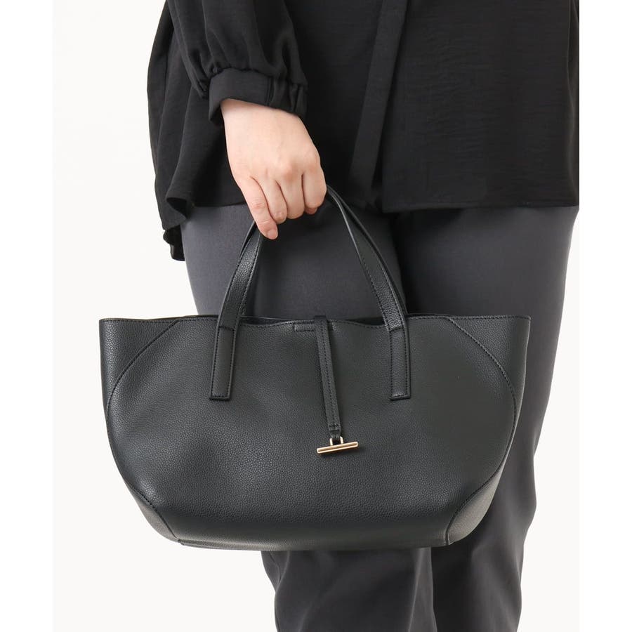 上質感あるフェイクレザーにメタルバーをアクセントにしたトートバッグ。ショルダーベルト付きでお出かけにも便利な2WAY仕様です。しっかりとマチがあり収納力も抜群なのが嬉しいポイント。ベーシックなカラー展開でフォーマルにはもちろん、カジュアルスタイルにもシーズナブルに合わせて頂けるおすすめのアイテムです。