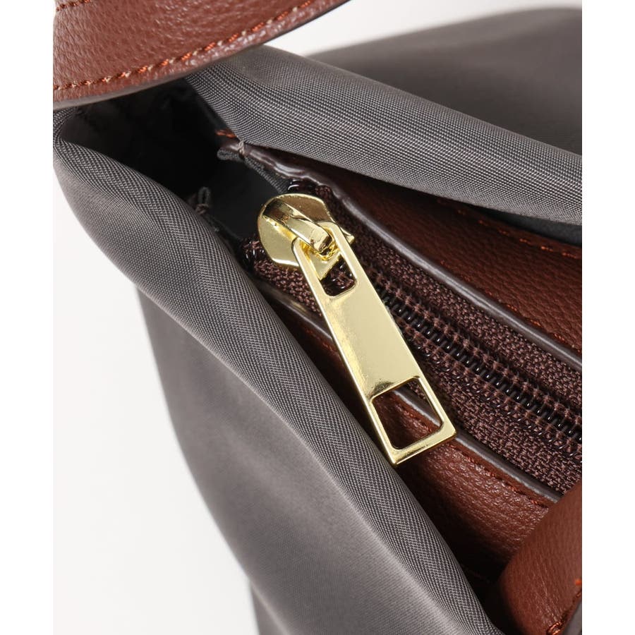 上品な光沢を持つナイロン素材と柔らかい合皮を合わせたコンパクトはショルダーバッグ。