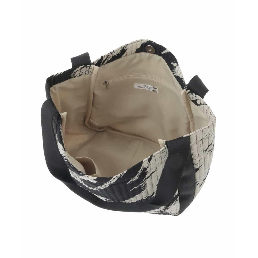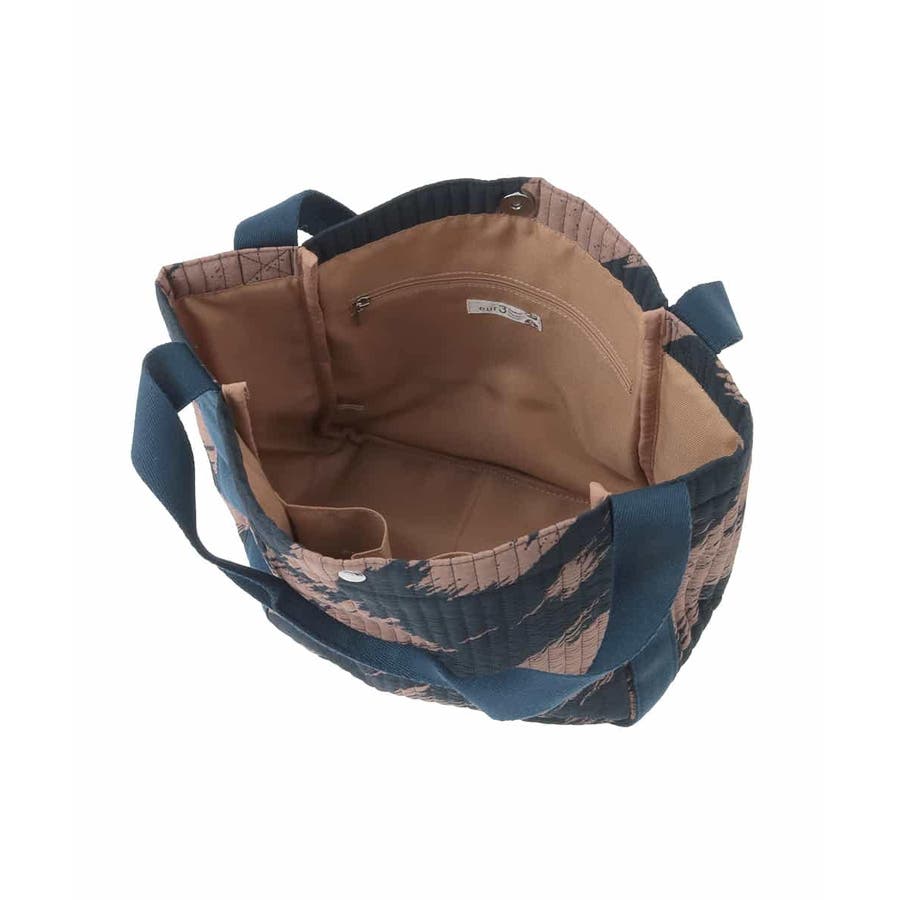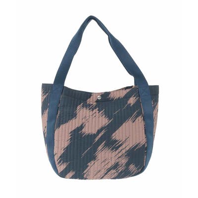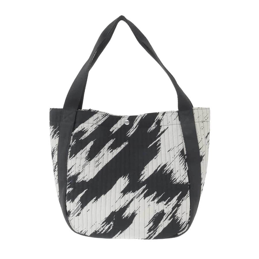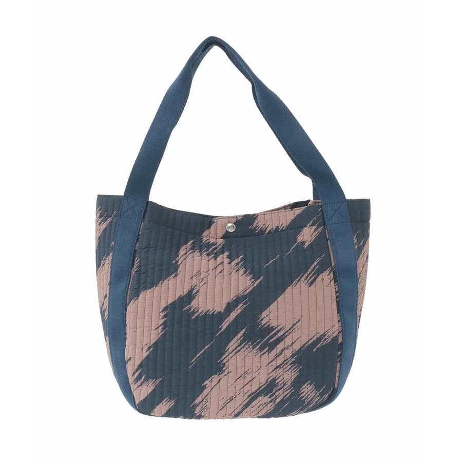 ペイント風のスタイリッシュな柄が印象的なデザイントートバッグ。軽量素材で仕立てたソフトなキルティング仕上げでお出かけに丁度よいサイズ感なのもポイントです。マチが広めの実用的な収納力で様々なシーンで幅広く活躍。インパクトのある配色がスタイリングのアクセントにも最適なおすすめのアイテムです。