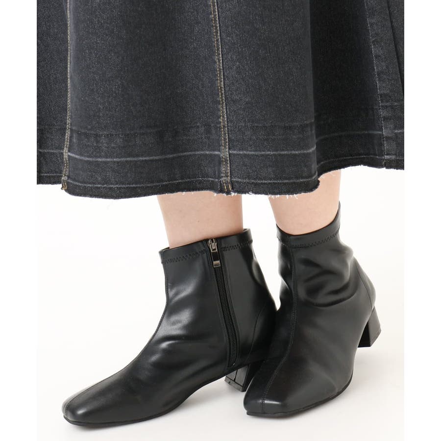 スクエアトゥショートブーツ