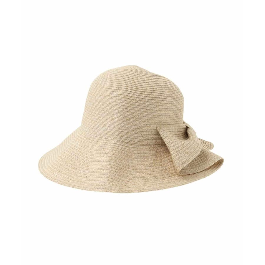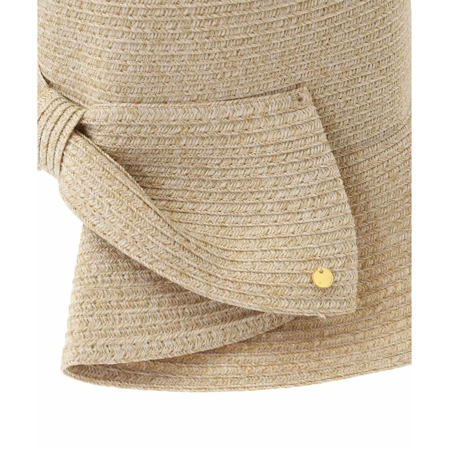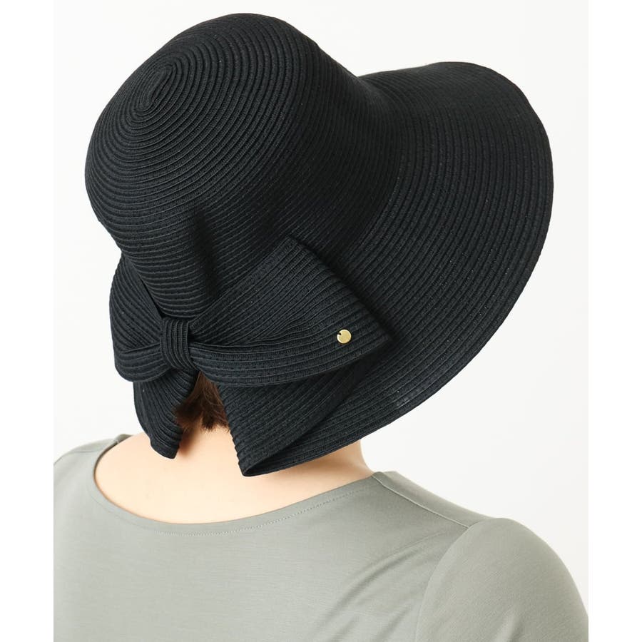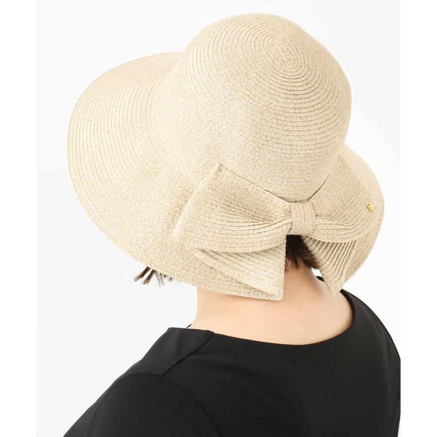 バックリボンのメタルプレートがさりげなく高級感をプラス。スリット入りで、髪を結んだままでも被れる使い勝手の良さも魅力的です。