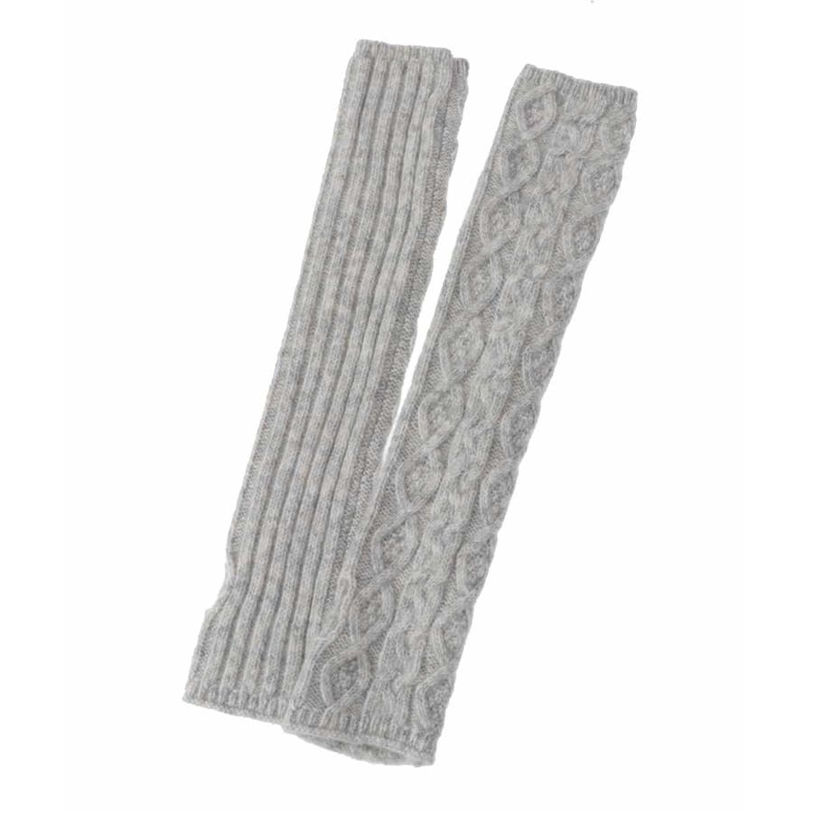 異素材のスタイリングに合わせたいふんわりニットのアームウォーマーです。