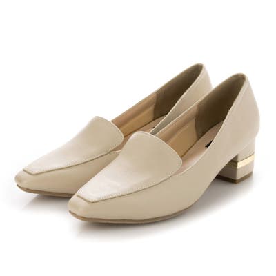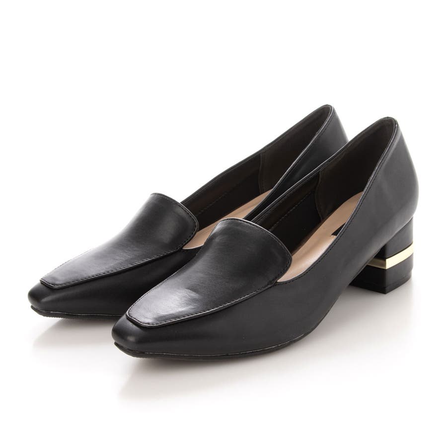 程よいスクエアデザインが上品なチャンキーヒールパンプス。ヒールが約4.5cmで歩きやすく、普段使いはもちろん通勤にもおすすめ。シンプルなデザインですが、ヒール部分のゴールドの金具がアクセントになり、どの角度から見ても高見えする1足です。