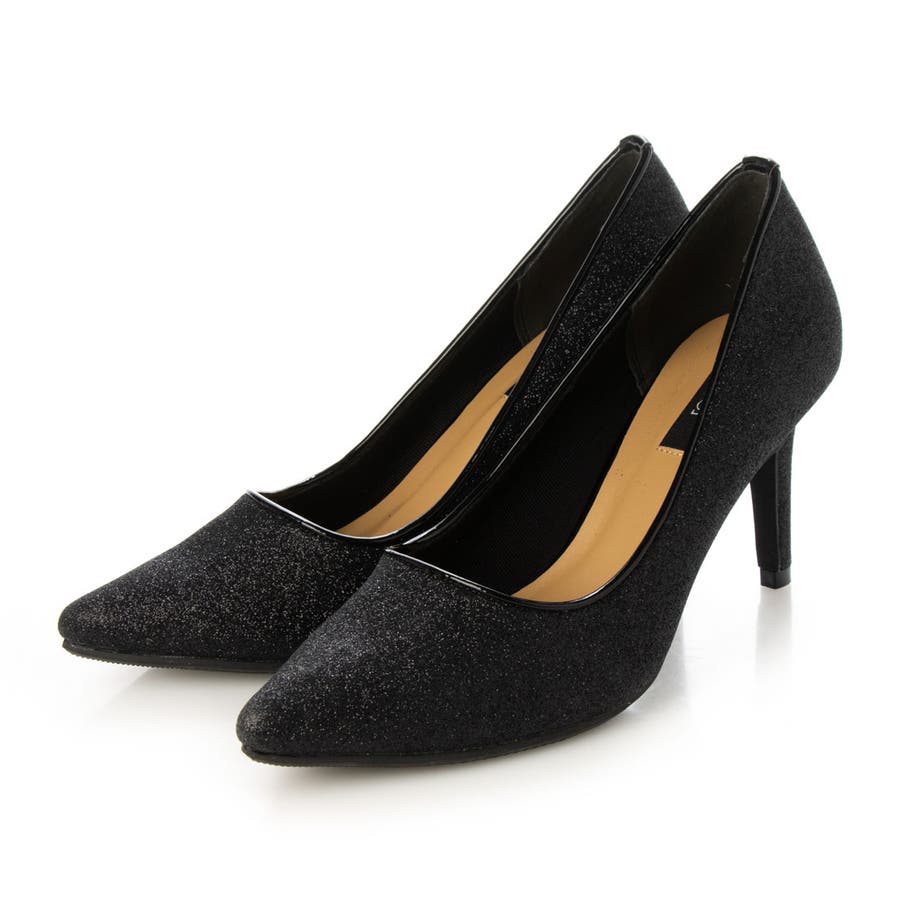 大人気デザインが復活。細かな粒子のラメをたっぷりと施した、上品な華やかさが魅力的なポインテッドトゥパンプス。