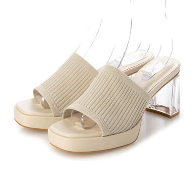 ニットクリアヒールスクエアサンダル