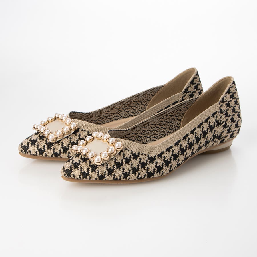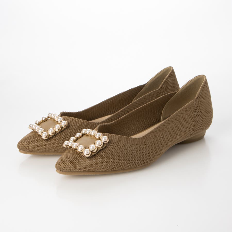 大人気のニット素材を使用したフラットパンプスに新デザインが登場!ゴールドのメタルパーツと女性らしいパールを組み合わせたリュクス感漂うスクエアバックルを採用し、ポインテッドトゥでよりすっきりと洗練された印象に。華やかなパーツなのでフラットでもカジュアルになりすぎず、取り入れるだけでコーディネートを完成してくれます。足当たりが柔らかいニット素材はとにかくソフトで、リピーター続出のストレスフリーな履き心地は一度履くと病みつきに。普段使いや特別な日はもちろん、オフィスカジュアルとしても使えるので、デザイン違いで揃えたくなるニットシリーズはぜひ押さえてほしいアイテムです。