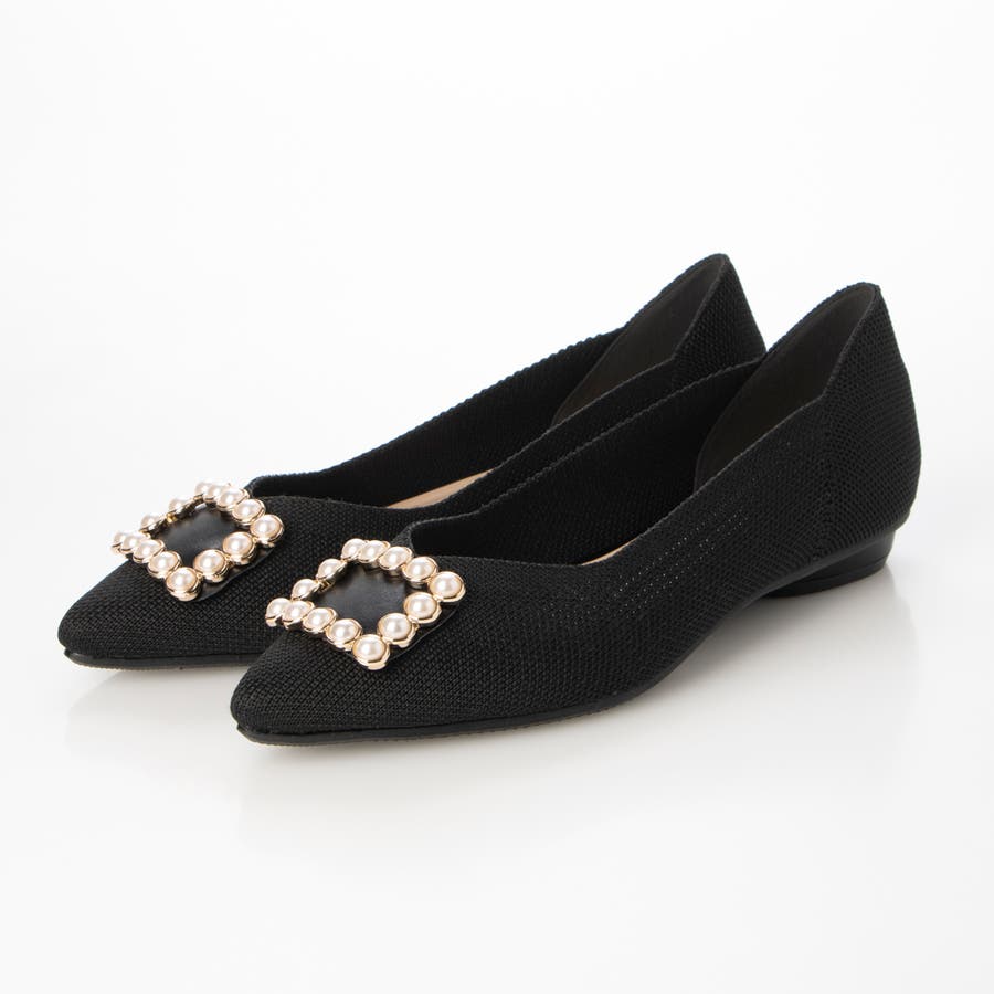 ソフトニットV カットパールバックルパンプス