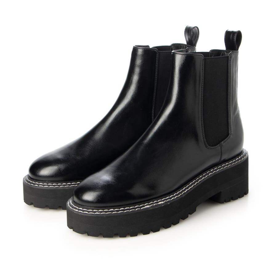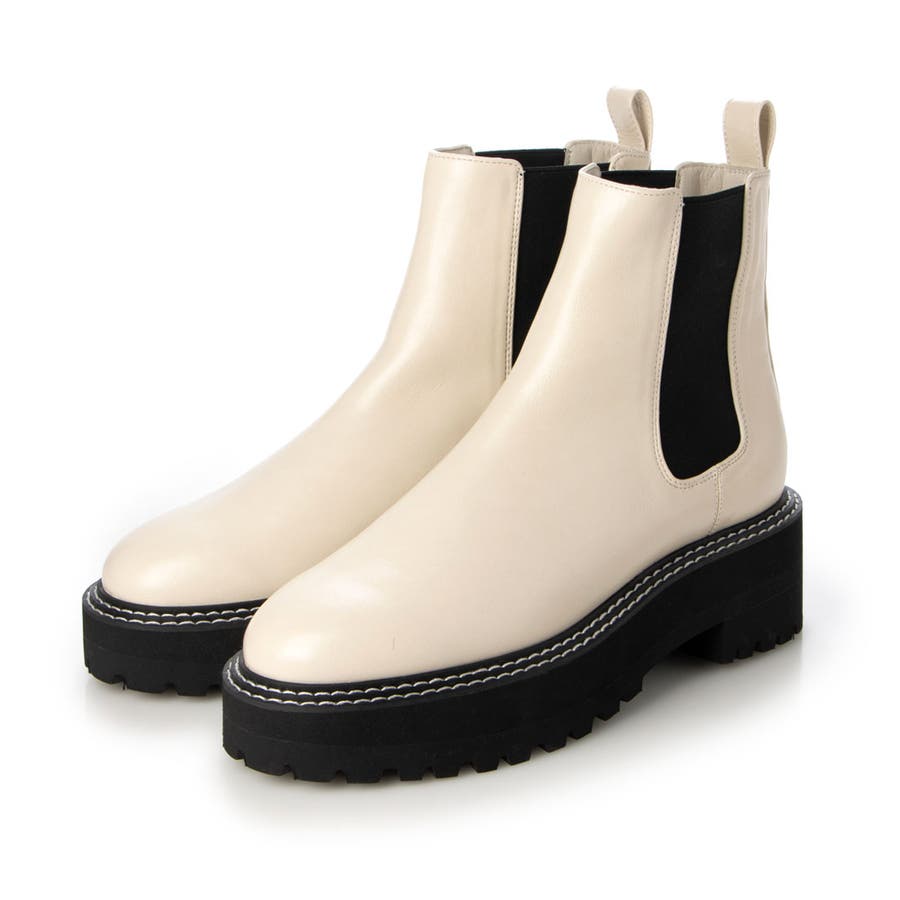 重厚感たっぷりのボリュームソールは取り入れると意外にも全身のスタイリングをすっきり見せてくれて、脚長効果が期待できる嬉しいアイテム。秋冬のコーディネートを完成してくれる定番のサイドゴアブーツと合わせることで、シンプルかつ大人カジュアルな印象に。ホワイトのダブルステッチがアクセントになり、こなれ感たっぷりの今っぽいスタイルが完成。
