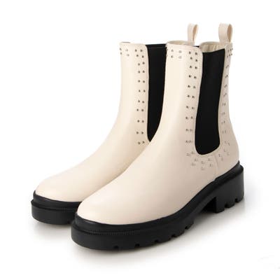 シンプルなサイドゴアに細かなスタッズをプラスしてリュクス感漂う大人の厚底ブーツに仕上げました。ラフなカジュアルさがありつつ、モードで上品な印象があるので取り入れるだけでコーディネートを仕上げてくれます。程よい厚底ソールは軽量で歩きやすく、簡単にスタイルアップが叶いデイリーで使いやすいアイテム。