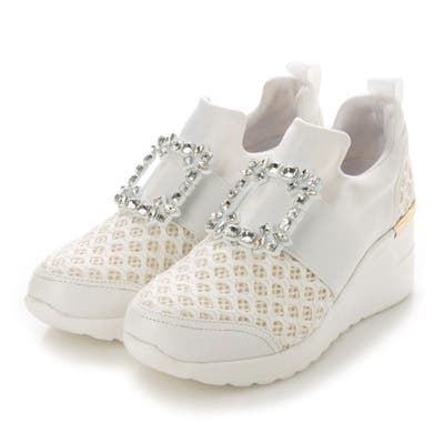 ラインストーンを施した存在感のあるバックルが、カジュアルになりすぎず履ける1足。キラキラ輝くバックルはどの角度から見ても上品で女性らしい。傾斜がある厚底なので、簡単にスタイルアップが叶うのはもちろん、見た目以上に軽量でたくさん歩く日にもおすすめ!カジュアルすぎるスニーカーは苦手って方にも挑戦していただきやすいアイテムです!
