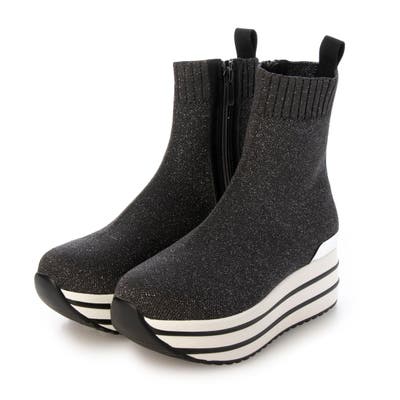 スニーカーのソールを使用したショートブーツ。ニット素材の筒回りはまるで靴下のようにぴったりフィット。見た目以上に軽いのもポイント