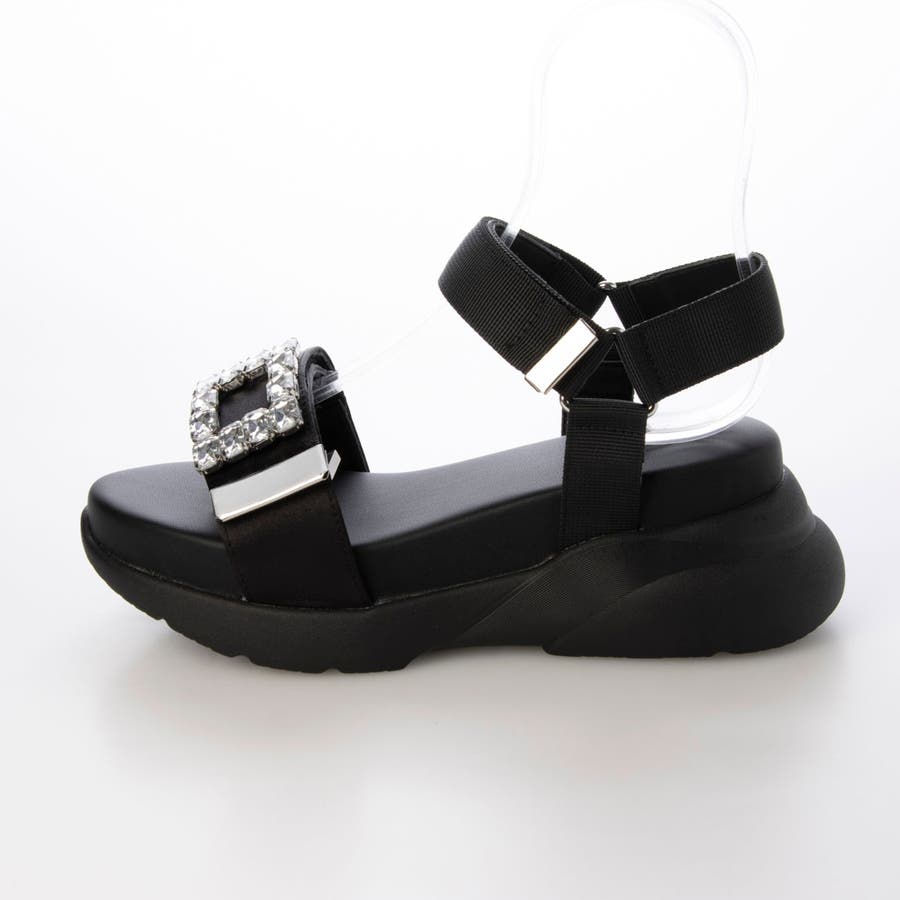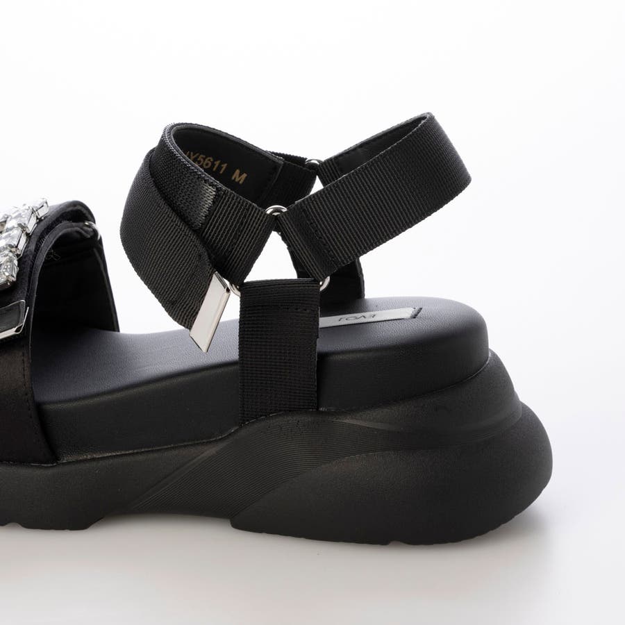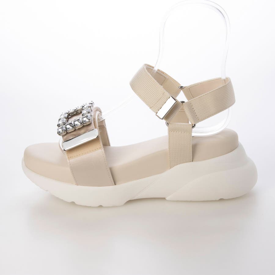 レディース サンダル スポサン スポーティー 厚底 ビジュー キラキラ スタイルアップ 美脚 脚長 ふかふか クッション性 ベルクロ マジックテープ レディ フェミニン 可愛い 綺麗め 大人っぽい 上品 超軽量 軽い 歩きやすい 安定感 フィット感 旅行 大きいサイズ LLサイズ 低身長