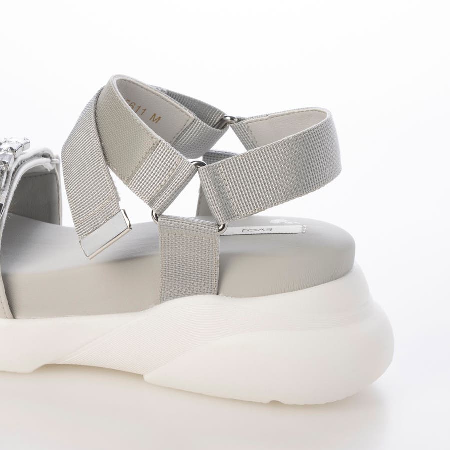 超軽量でもちもちふかふかの中敷きが新感覚!こだわりの履き心地でぜひ履いて試していただきたいサンダルが完成しました◎大きめのキラキラビジューがシーズンムードを盛り上げてくれ、コーディネートにアクセントをプラスしてくれます。ベルクロタイプで好みのフィット感に調節できるので、比較的どんなお足のタイプにもマッチするサンダルです。