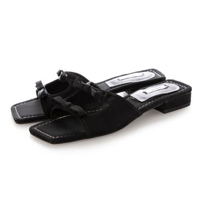 【クッション入り・柔らかい】スクエアリボンフラットサンダル
