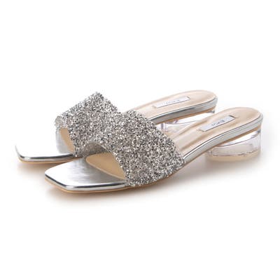 【クッション入り】グリッタークリアヒールサンダル