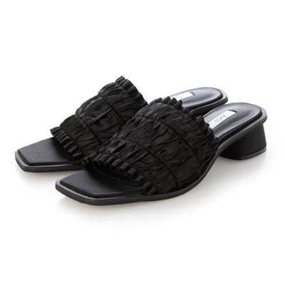細かなフリルとギャザーが夏のシンプルなコーディネートにアクセントをプラスしてくれるサンダル。手を使わずにスッと履けるミュールデザインで絶妙に履きやすい4cmヒールは楽にスタイルアップも叶います。サテン素材を使用しているのでカジュアルになりすぎず、上品な雰囲気でお洋服に合わせていただけるのもこだわりポイント。
