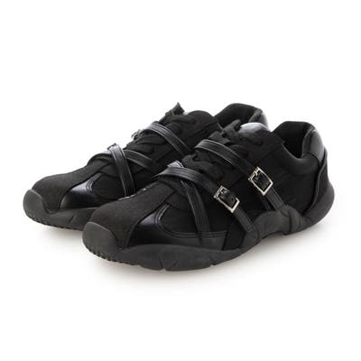 トレンドのクロスベルトデザインで足元から今っぽさをプラス!あえてボリューム感を抑えたシルエットにすることで、大人っぽい雰囲気で履けるよう仕上げました。レースアップとクロスベルトはお好みのフィット感に調節可能で、足全体をしっかり包み込みホールド感抜群◎クッション性のある中敷きが足裏をサポートし、デイリー使いしやすい快適な履き心地です。カジュアルから綺麗めまで幅広いスタイリングにマッチする万能スニーカー!