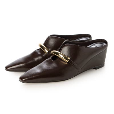 レディース パンプス ミュール スクエアトゥ ゴールドモチーフ ゴールドパーツ ウエッジソール 5.5cm 安定感 歩きやすい 疲れにくい 柔らかい ソフト クッション性 痛くなりにくい ホールド感 フィット感 上品 高級感 こなれ感 お洒落 デイリーユース タウンユース お出かけ モード クール カジュアル 大人カジュアル 大人っぽい シンプルコーデ カジュアルコーデ ソックス合わせ 靴下合わせ 大きいサイズ LLサイズ 25cm 25.5cm