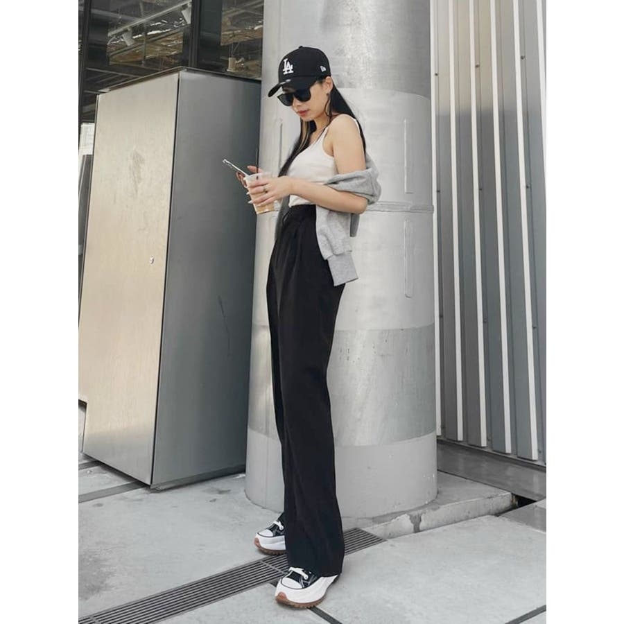 タックの入っているデザインでヒップ周りにはゆとりがあり、ゆったりとしたシルエット。