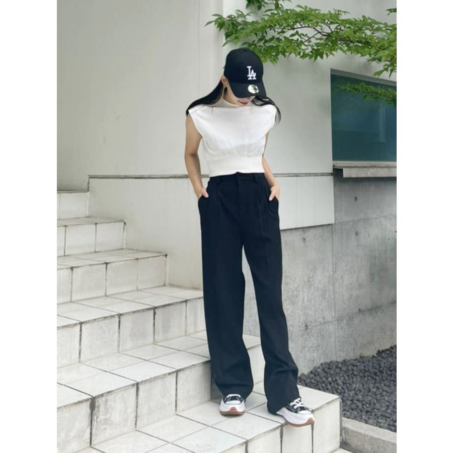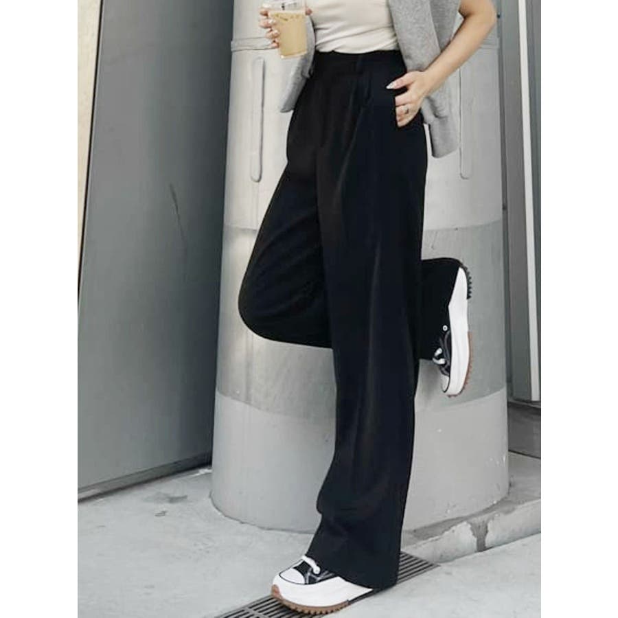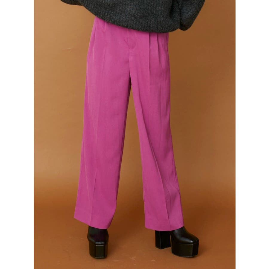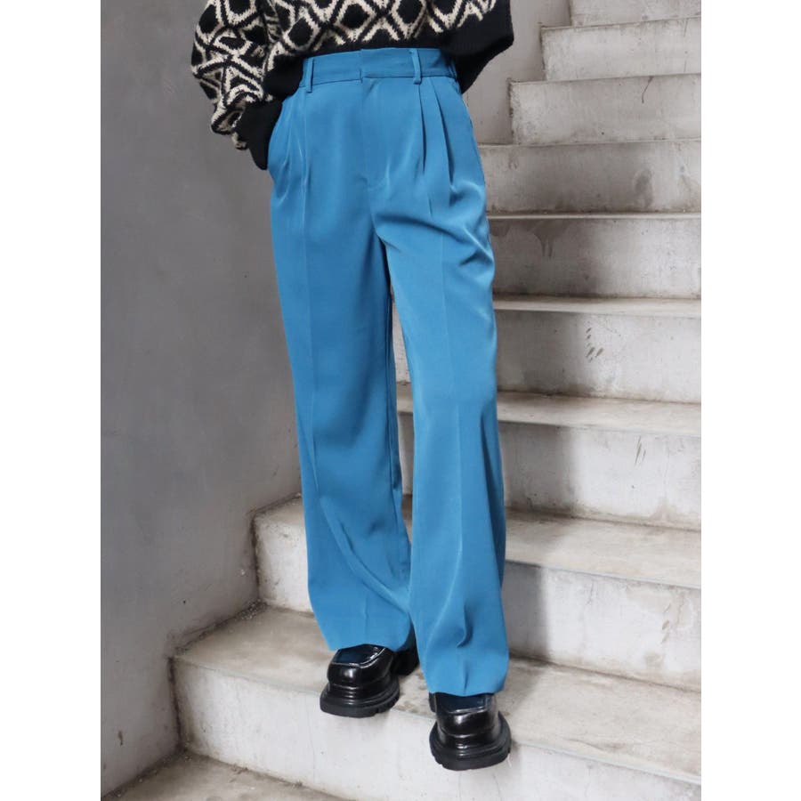 ゆったりシルエット落ち感のある合繊のツイル素材を使用したタックストレートパンツです。