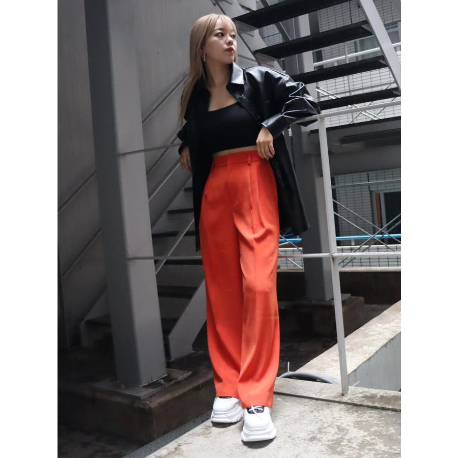 ヴィヴィッドなカラー展開でどんなトップスと合わせてもトレンド感のあるスタイリングが完成するマストバイな1枚です。
