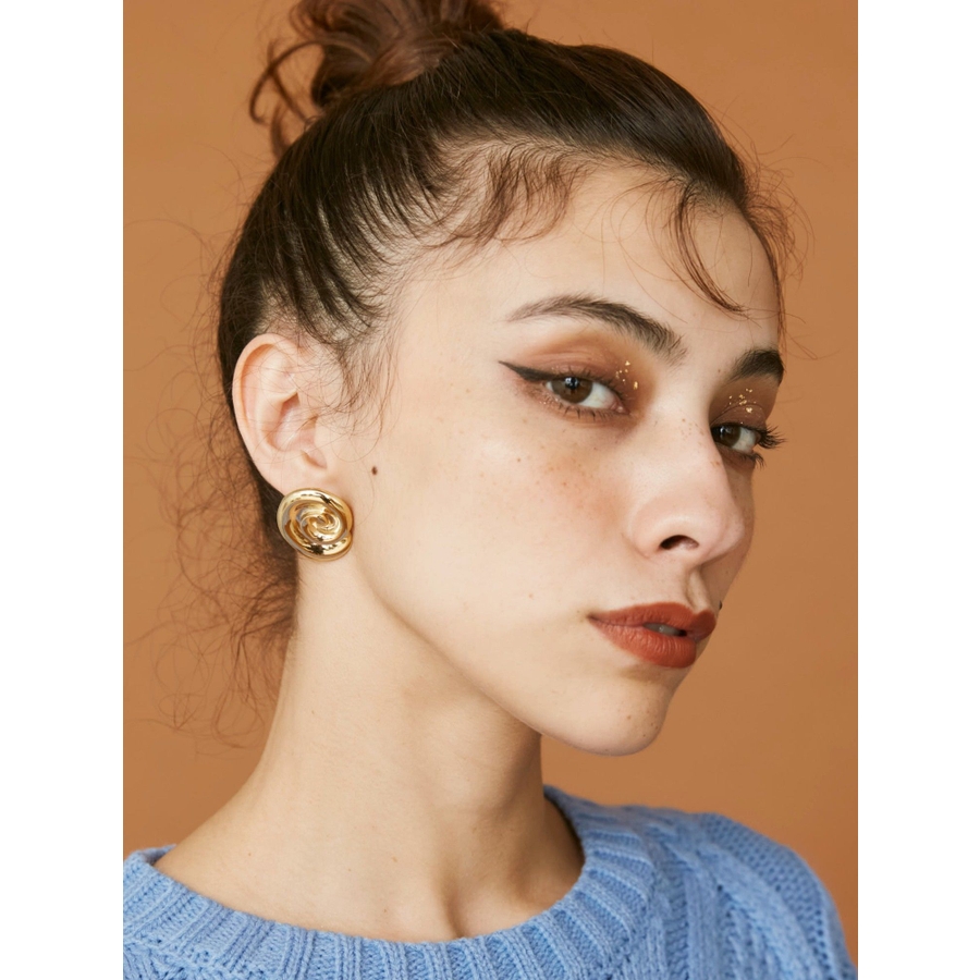 変形マーブルが珍しいデザインのピアスです。アンティーク感のあるデザインなので、耳元が華やかな印象になります。
