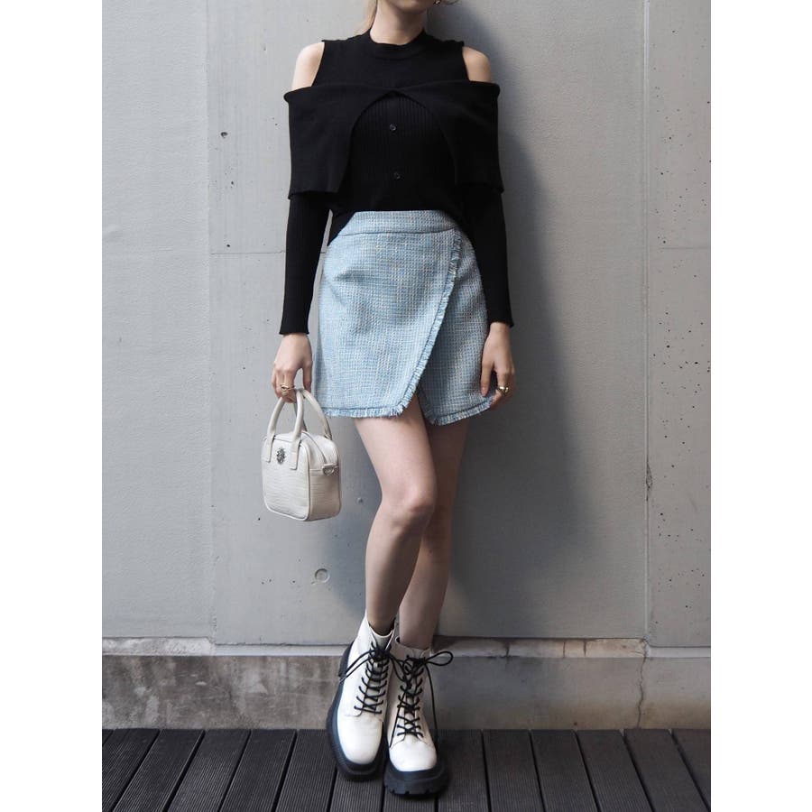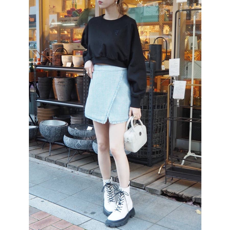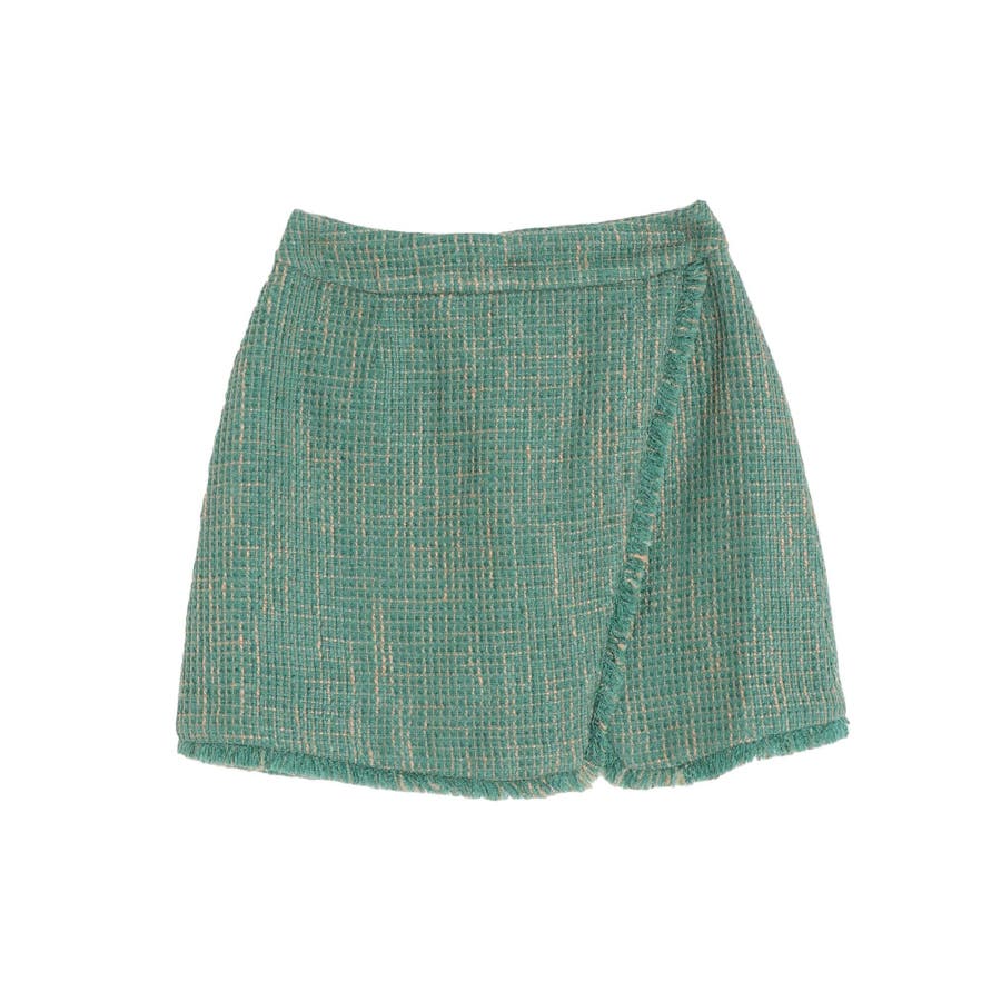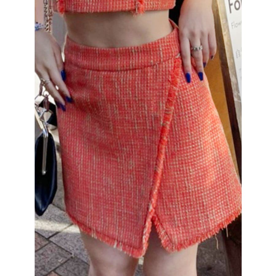 春らしいカラーリングのツイード生地を使用したミニスカートです。