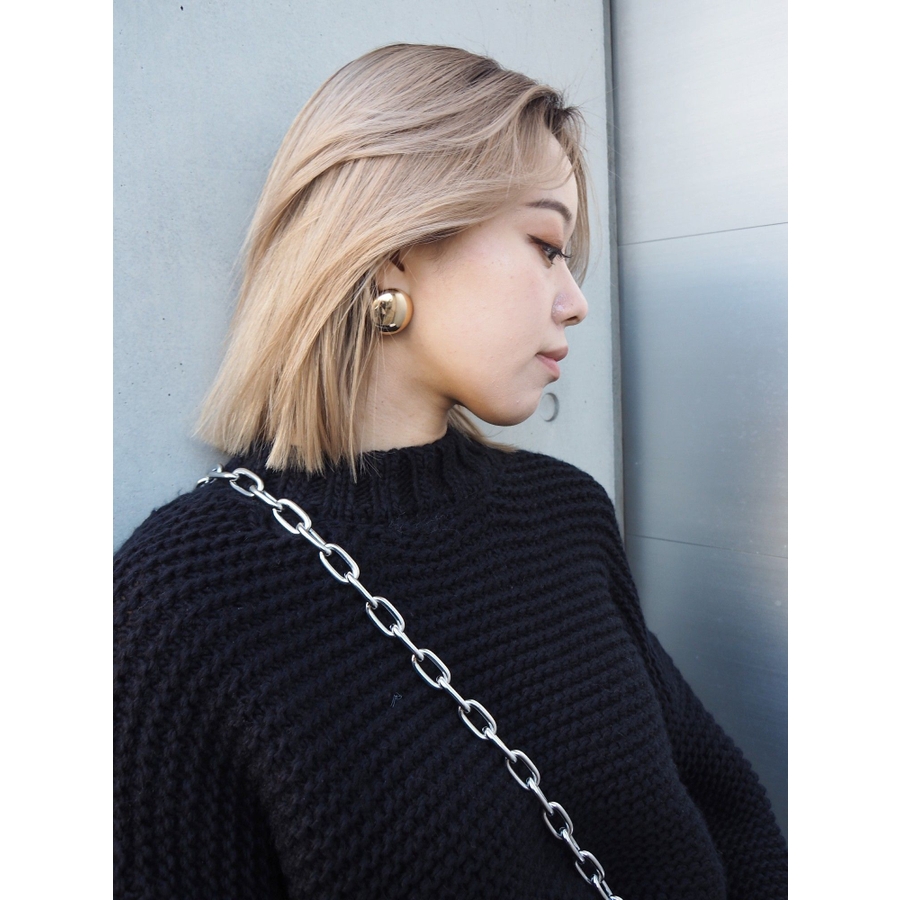 存在感のあるサークル型ピアスです。大きめのサイズ感なので付けるだけで耳元を華やかになり、おしゃれ見えするデザインです。