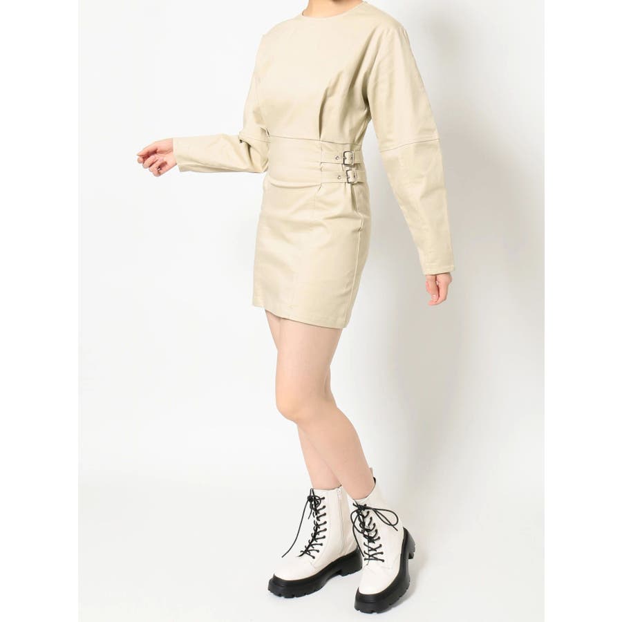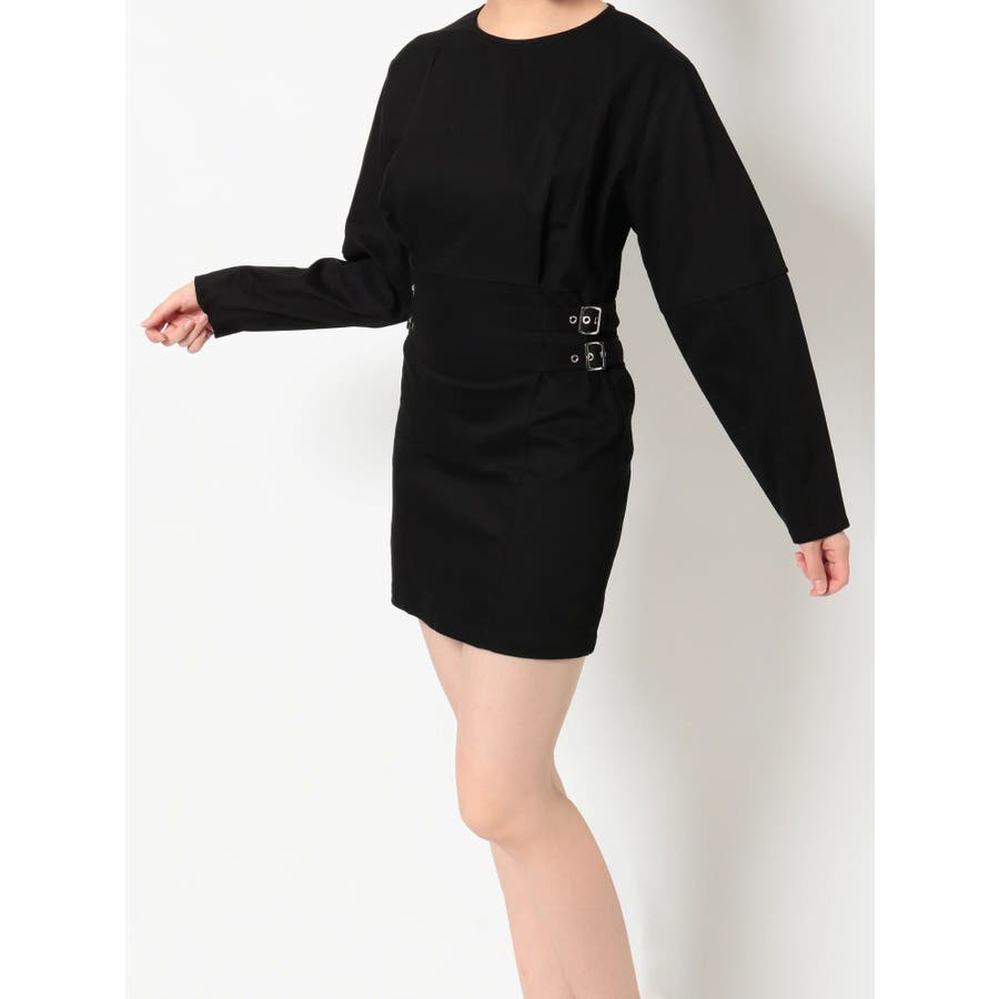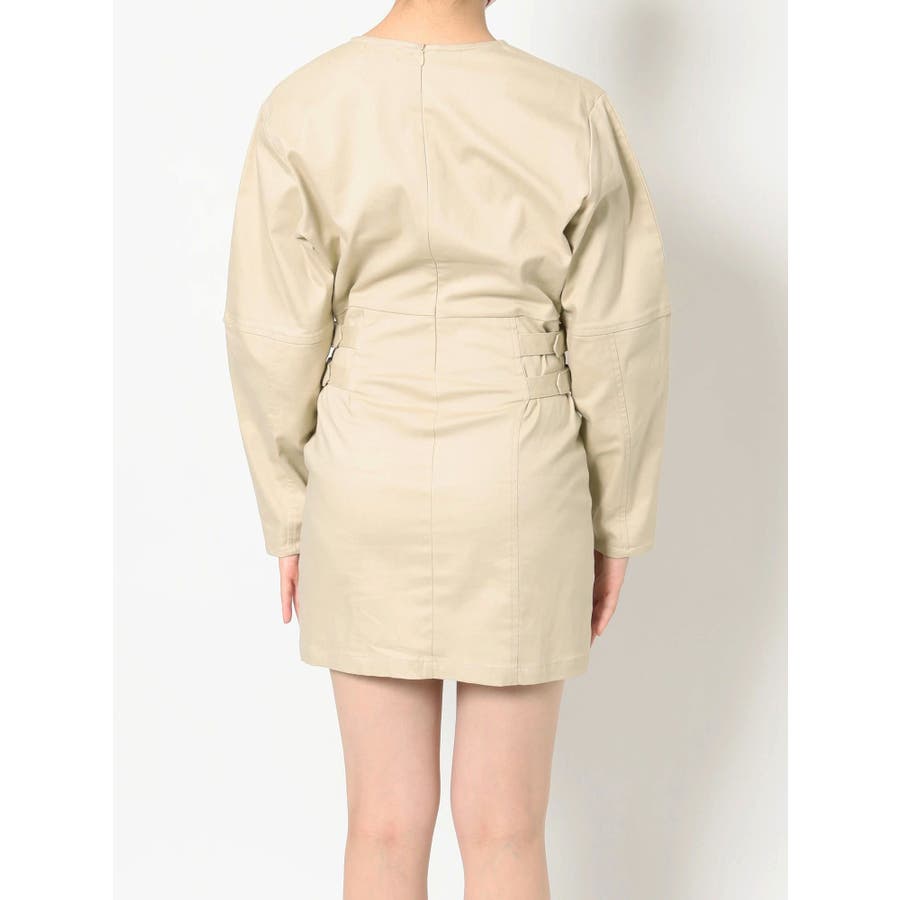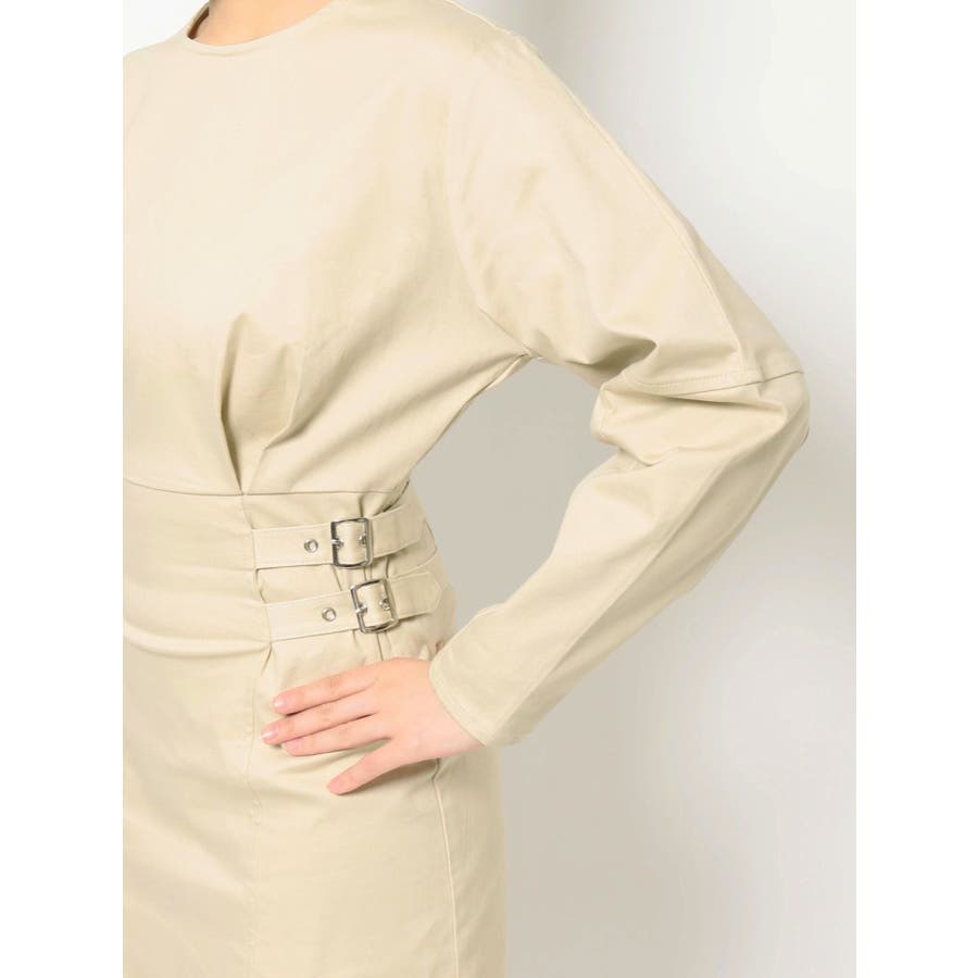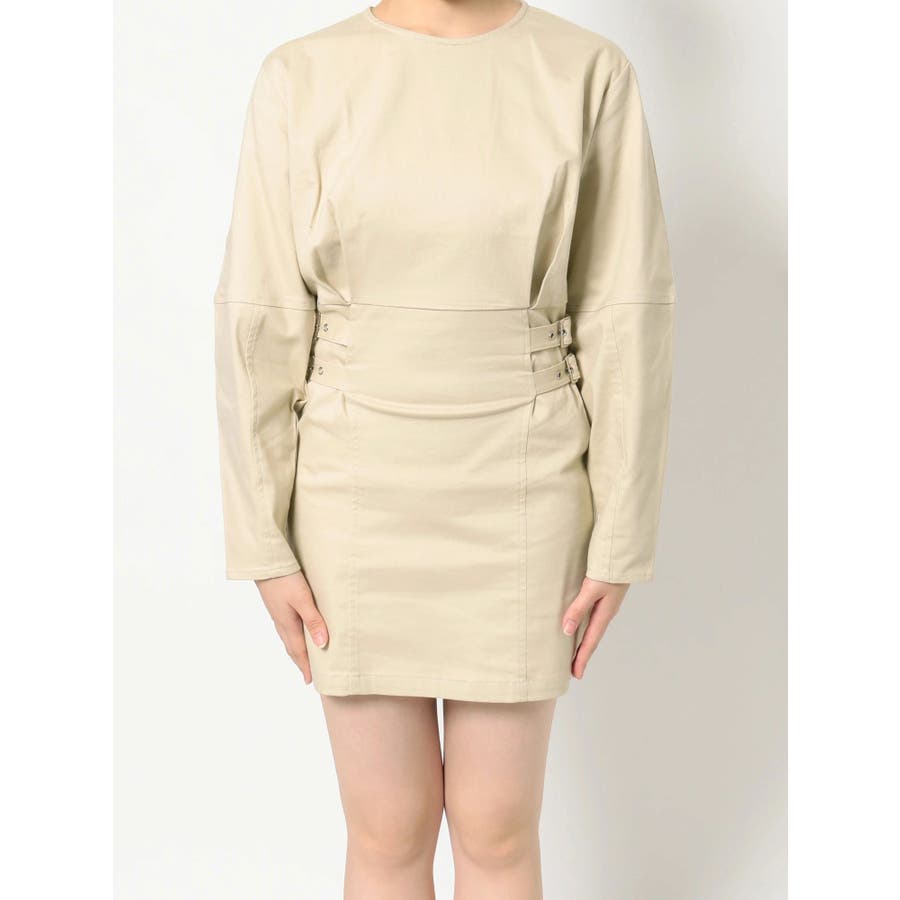 サイドにEVRIS(エヴリス)らしいベルトデザインと、タックがポイントのツイル素材を使用したミニワンピースです。後ろにコンシールファスナーをつけているため、すっきりとしたシルエットで着用できます。