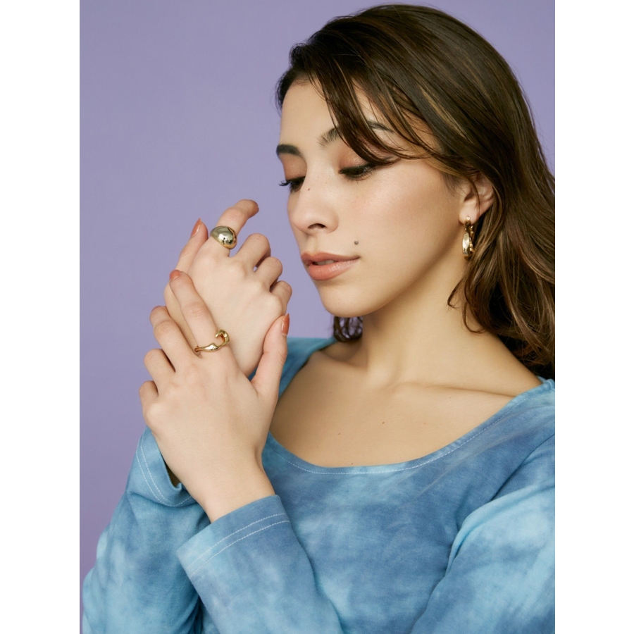 ぷっくりとしたシルエットが印象的なリングです。立体感のあるデザインなので、手元をより華やかに見せてくれます。