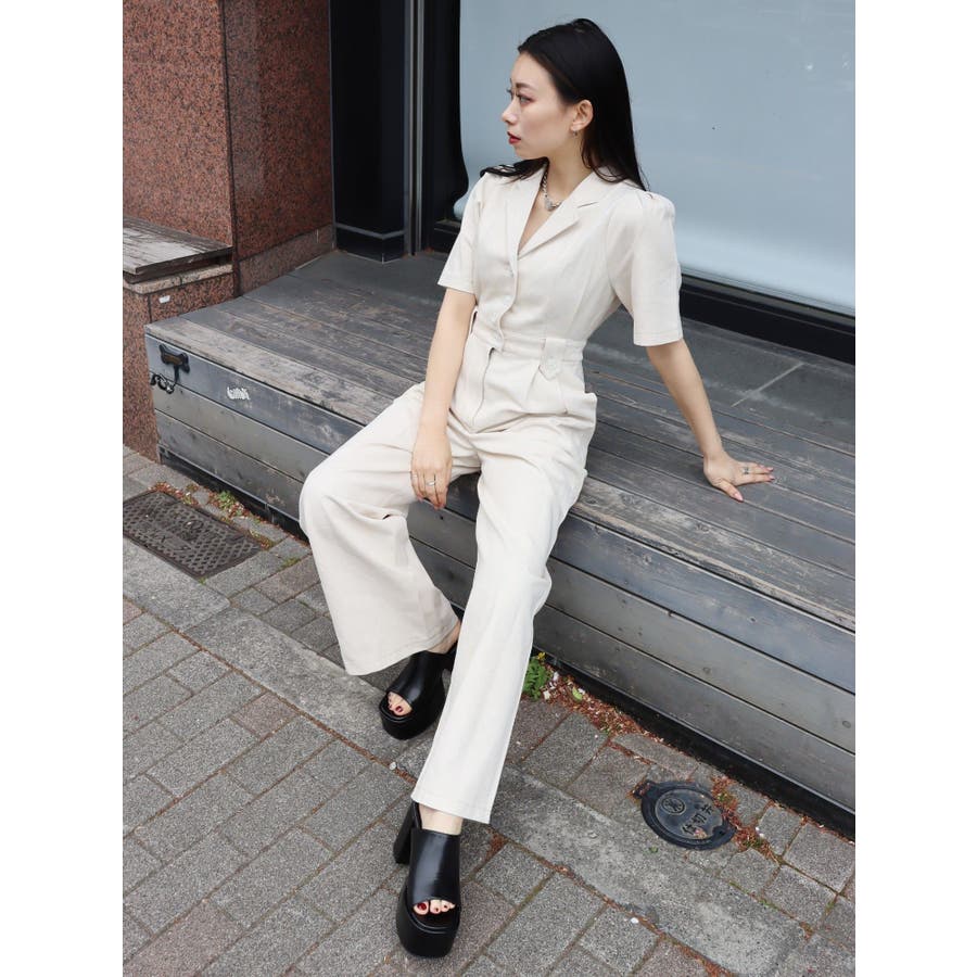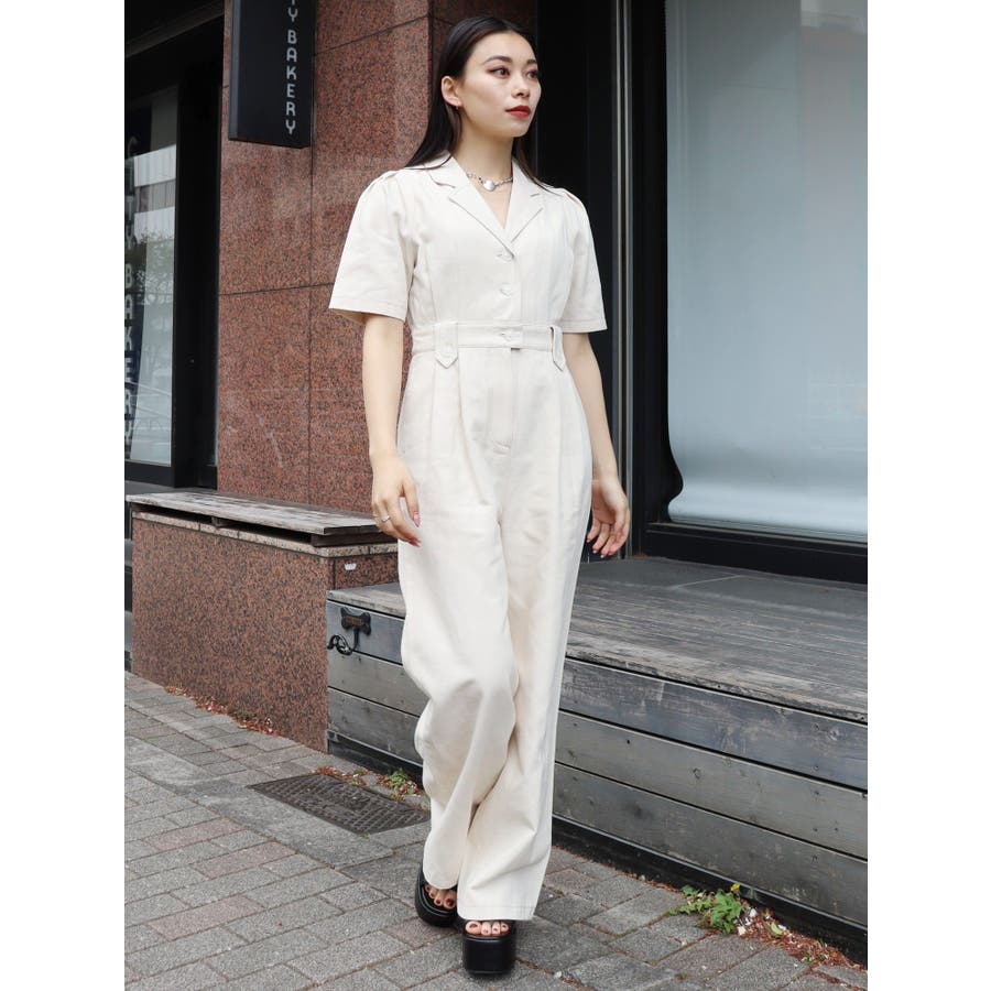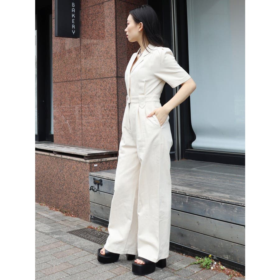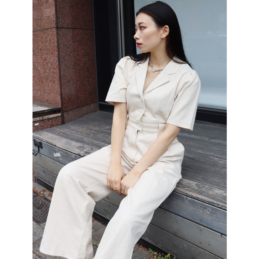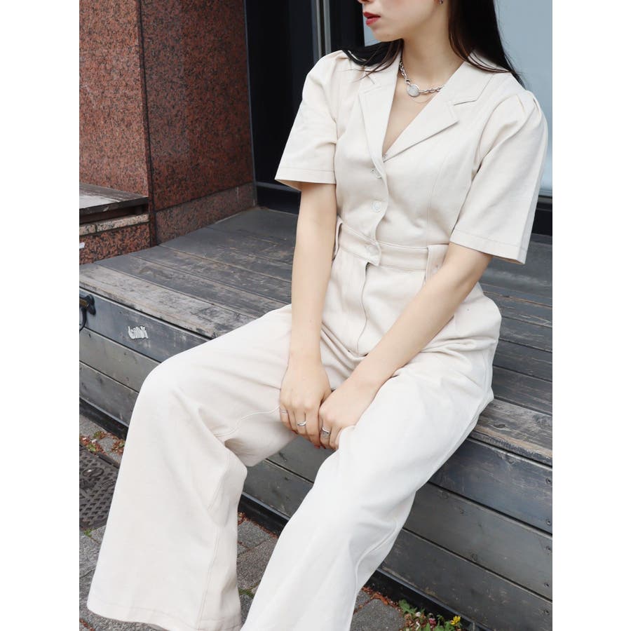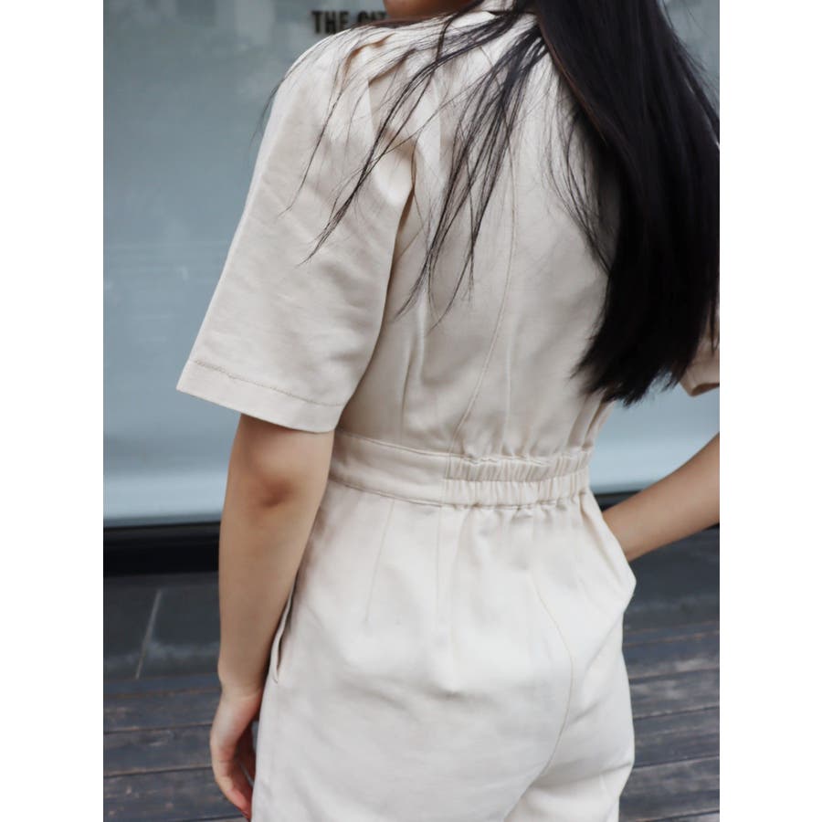 ★WEB限定アイテム★ボリュームのある袖とウエストタックがポイントのジャンプスーツです。ウエスト後ろには平ゴムが入っているので、ストレスフリーに着用できます。インディゴはデニム生地、アイボリーはツイル素材を仕様しています。
