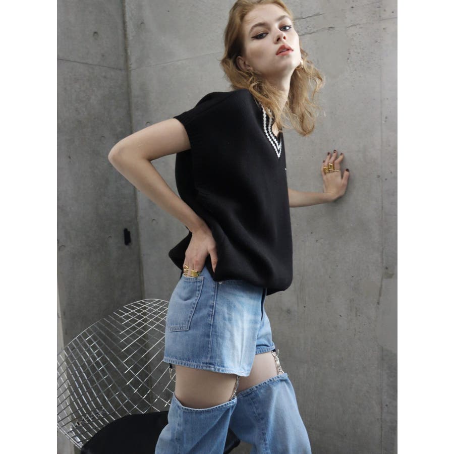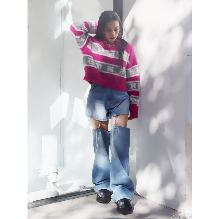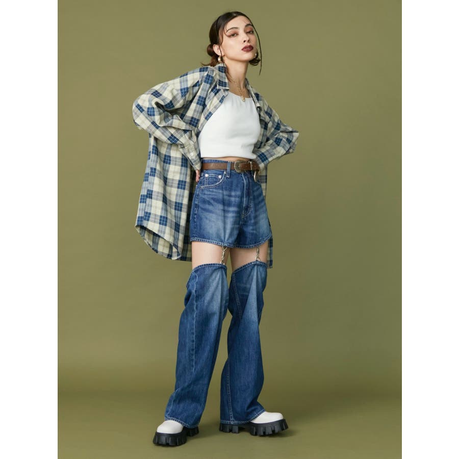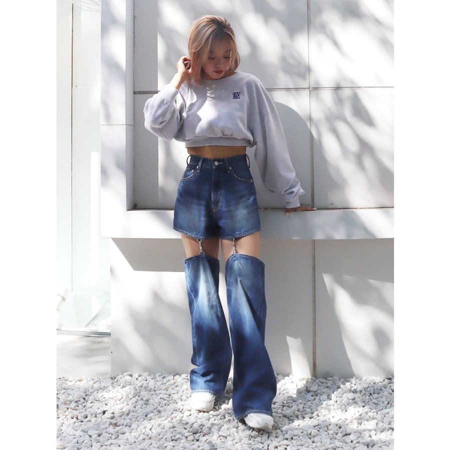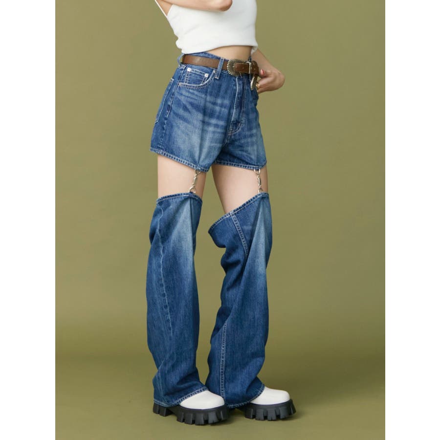 チェーンスラッシュワイドデニムパンツ