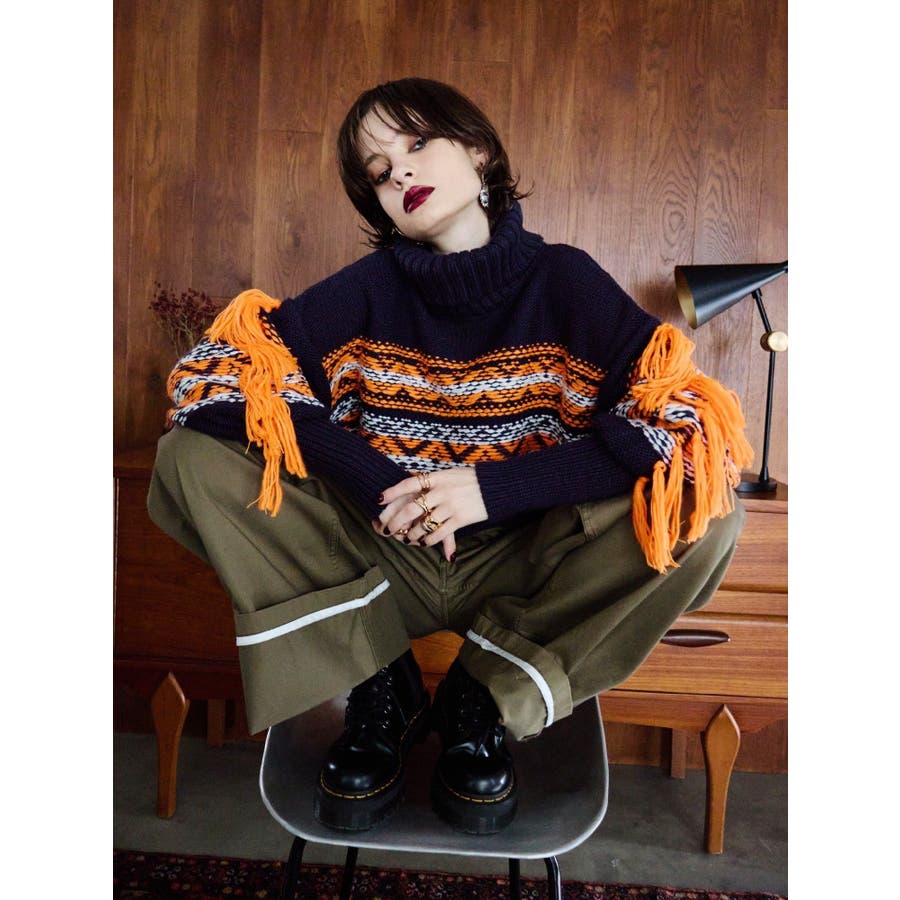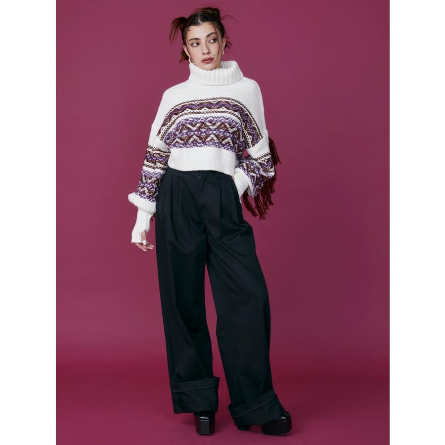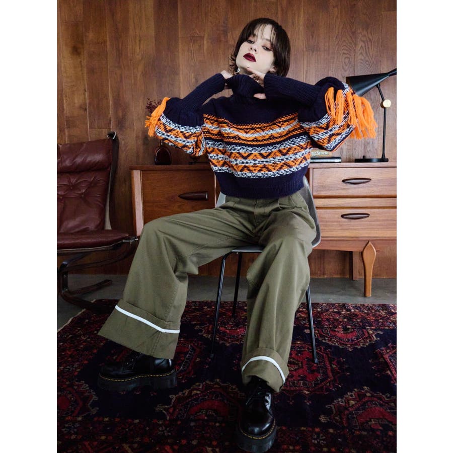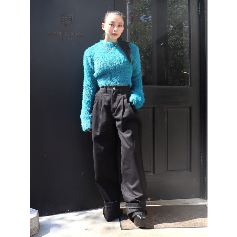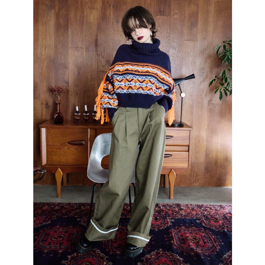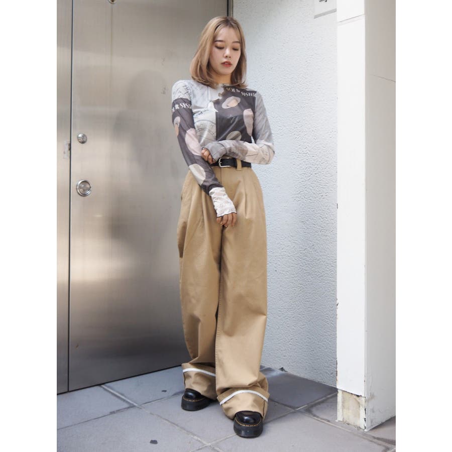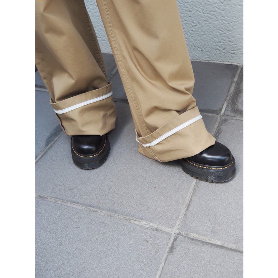 タックを入れて広めのヒップ幅にしており、たっぷりとしたボリュームが特徴的なワイドパンツです。裾の幅広めのロールアップもポイントです。カレッジアイテムなどと合わせてスクール風に合わせて着用するのがおすすめです。