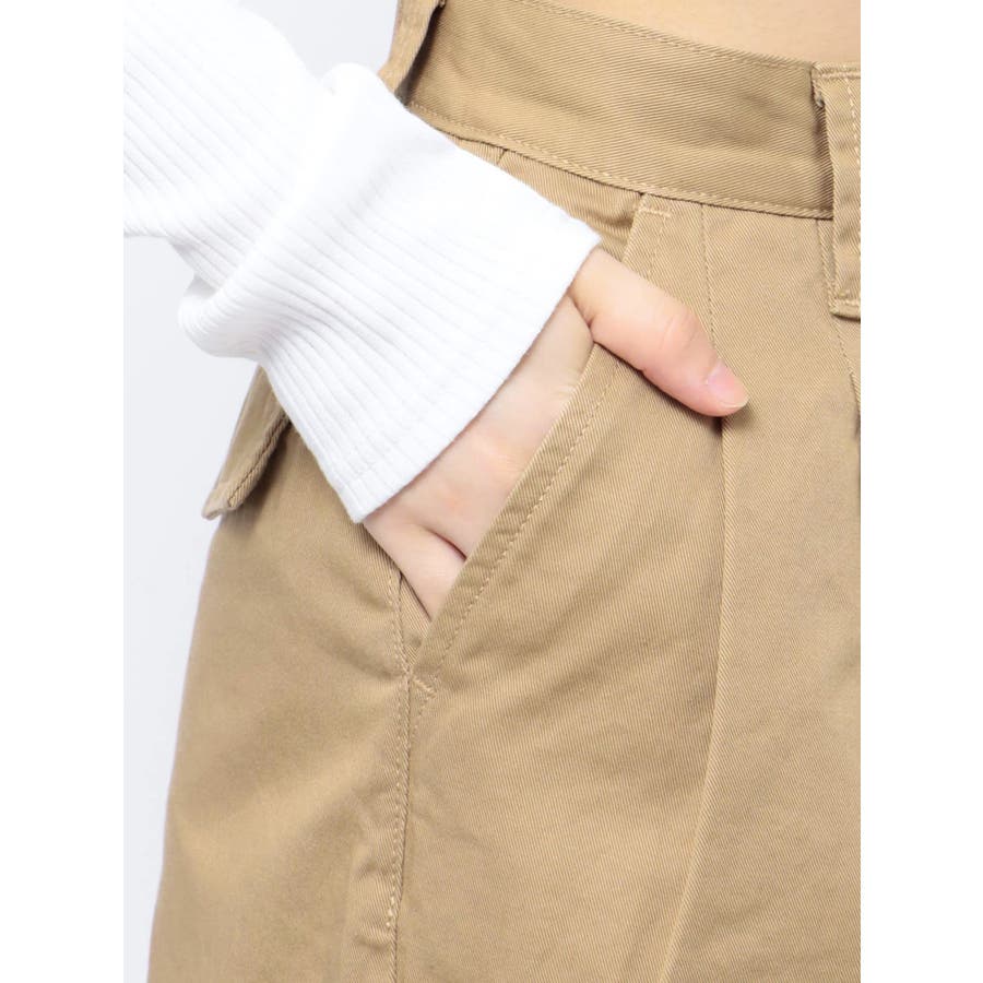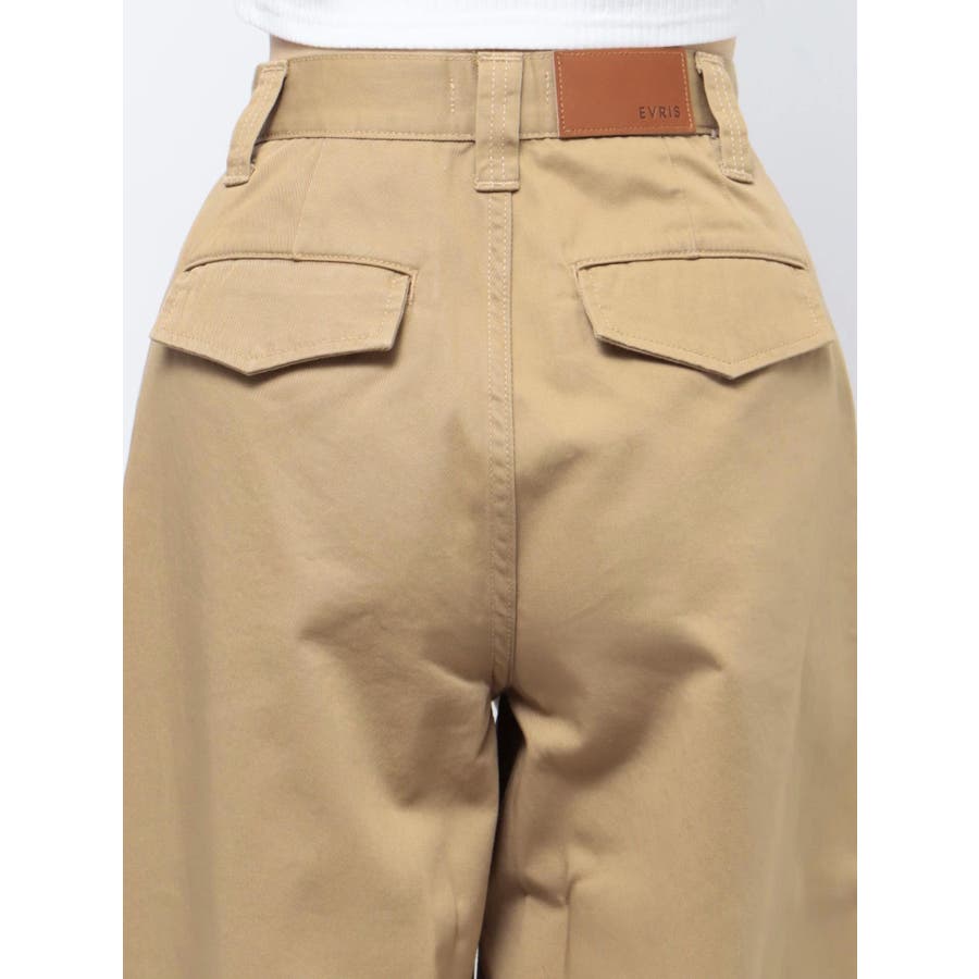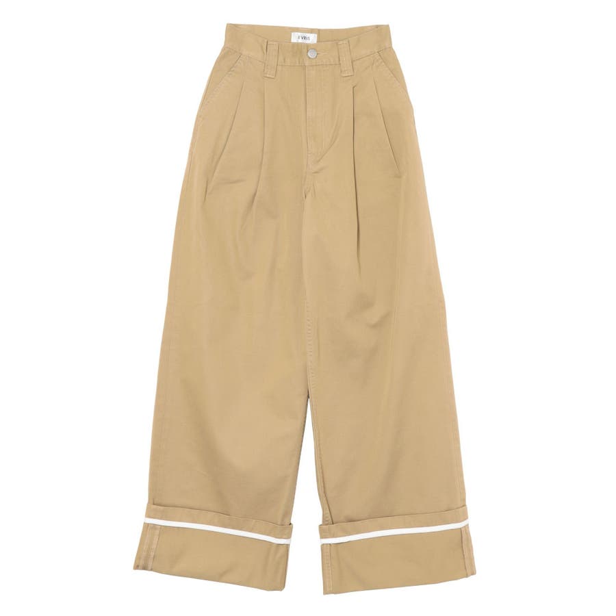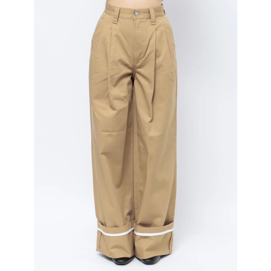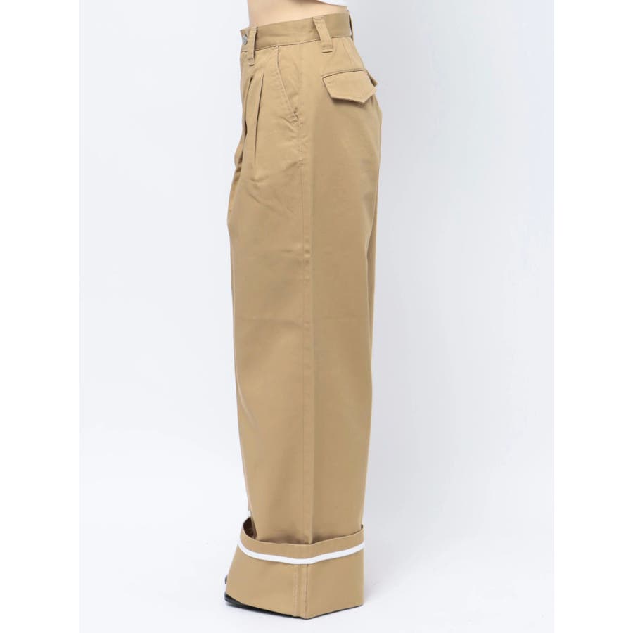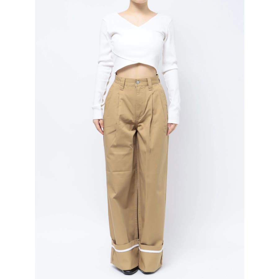 【ベージュ】ハイウエストロールアップタックワイドパンツ