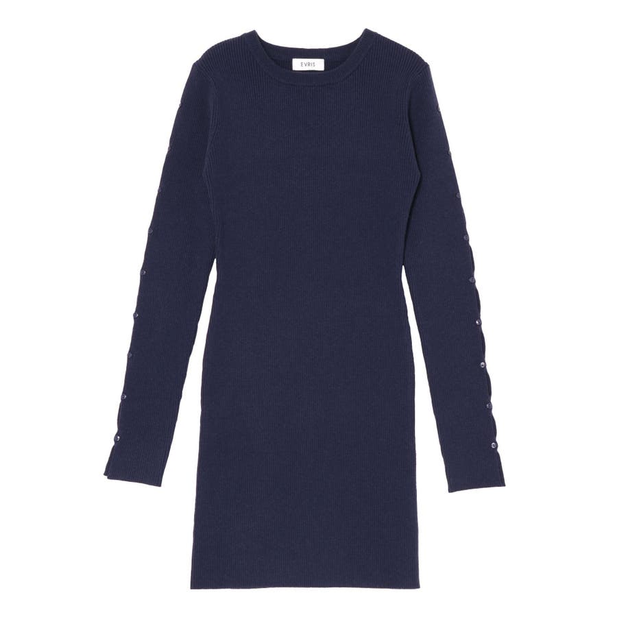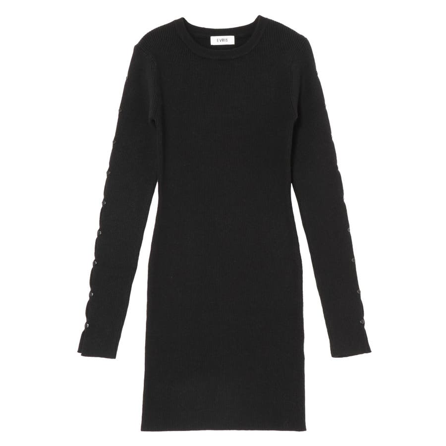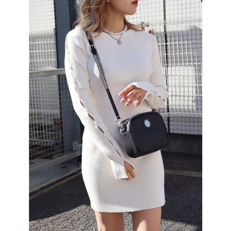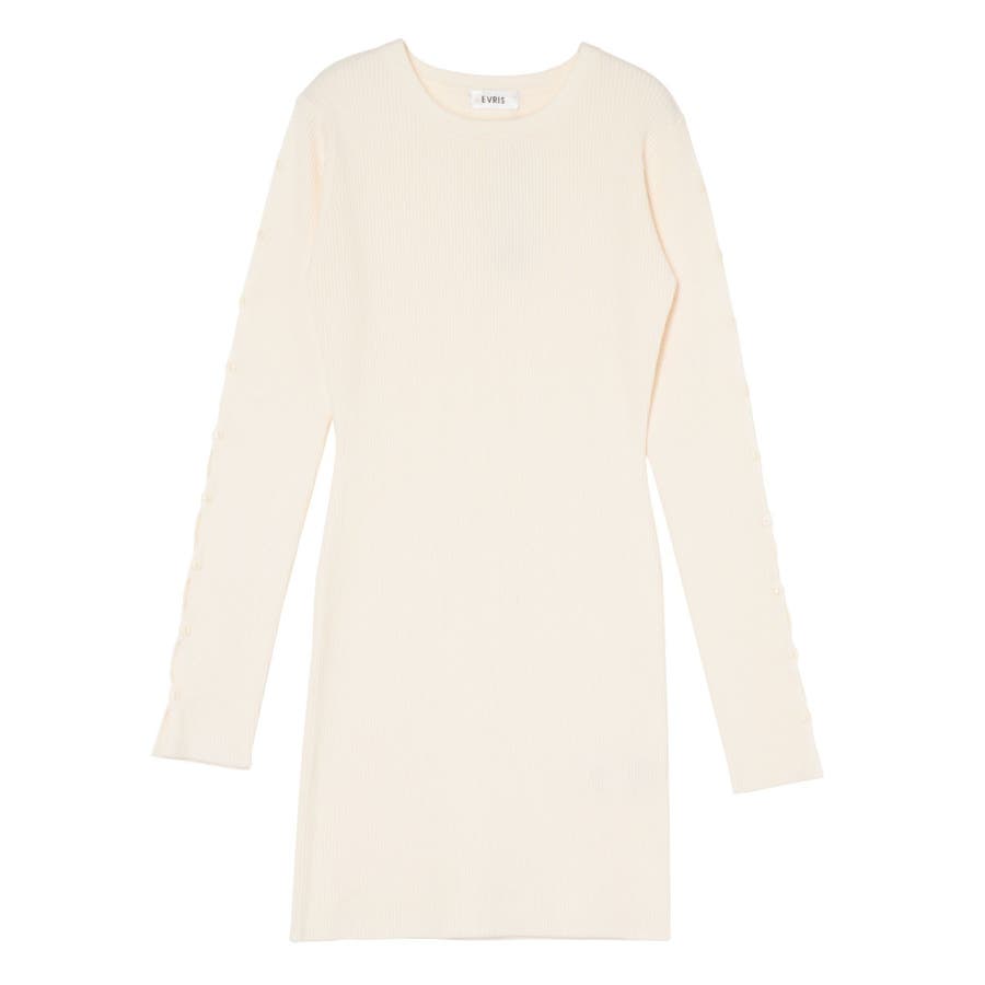 今季トレンドのカッティングデザインを取り入れたニットミニワンピースです。アーム部分のスリットデザインからさりげない肌見せができる一枚です。コンパクトなシルエットでスタイルアップできるニットミニワンピースはEVRIS(エヴリス)定番のデザインとなっています。