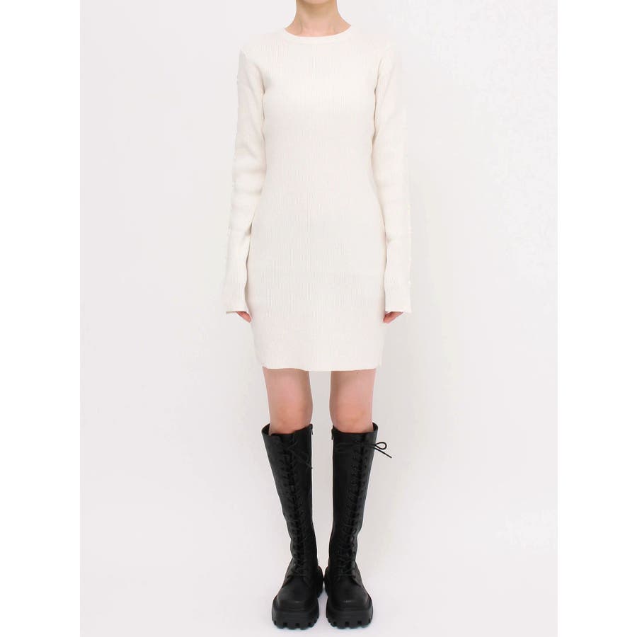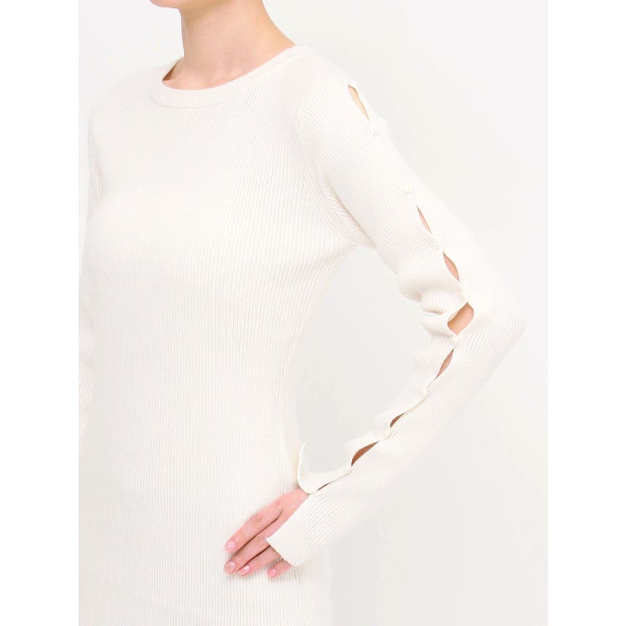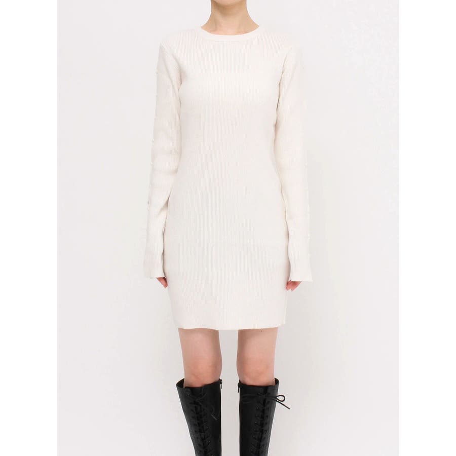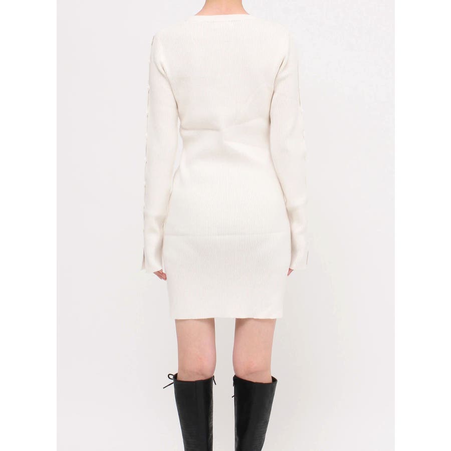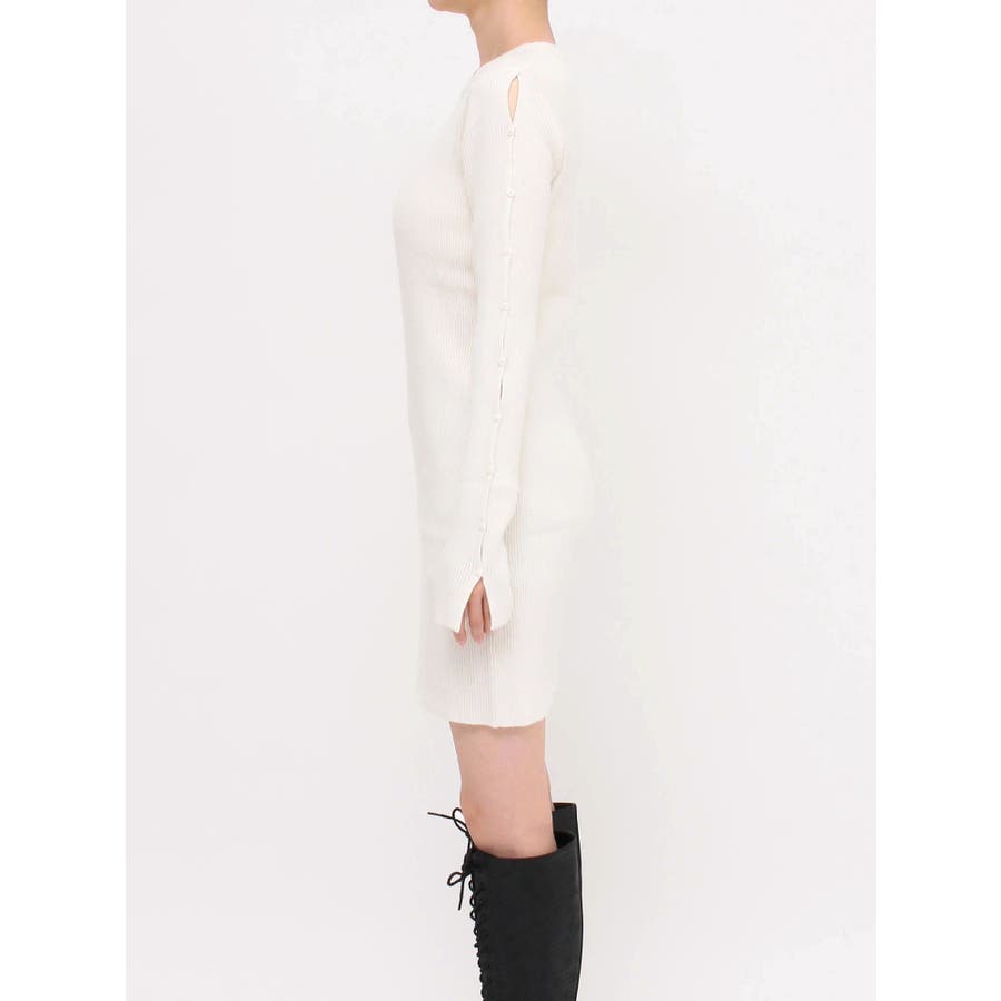 今季トレンドのカッティングデザインを取り入れたニットミニワンピースです。アーム部分のスリットデザインからさりげない肌見せができる一枚です。コンパクトなシルエットでスタイルアップできるニットミニワンピースはEVRIS(エヴリス)定番のデザインとなっています。