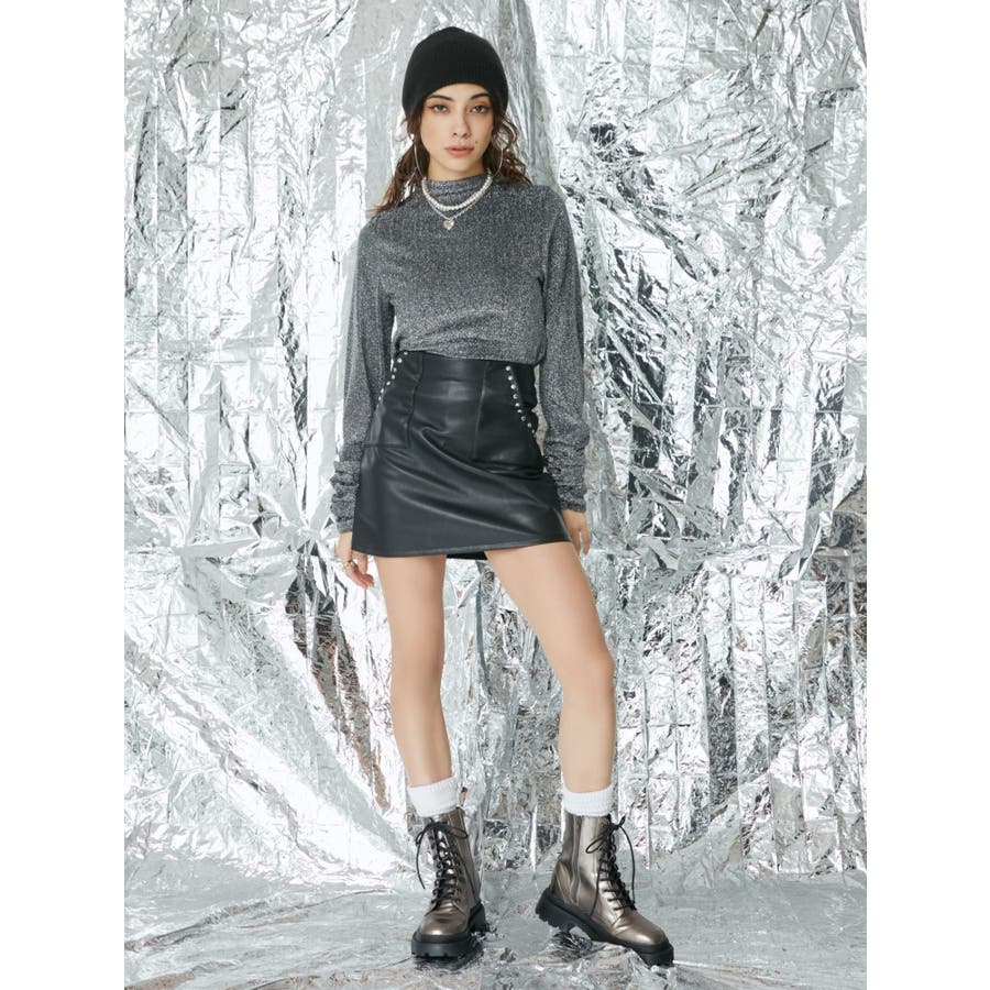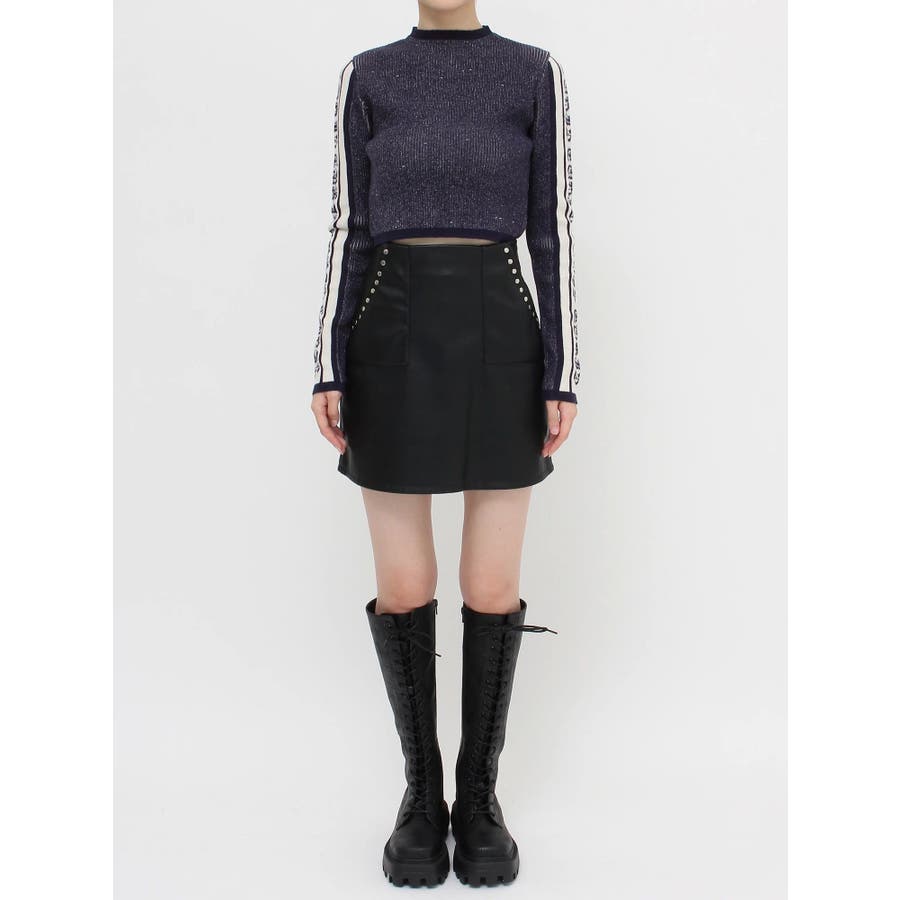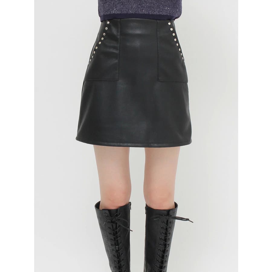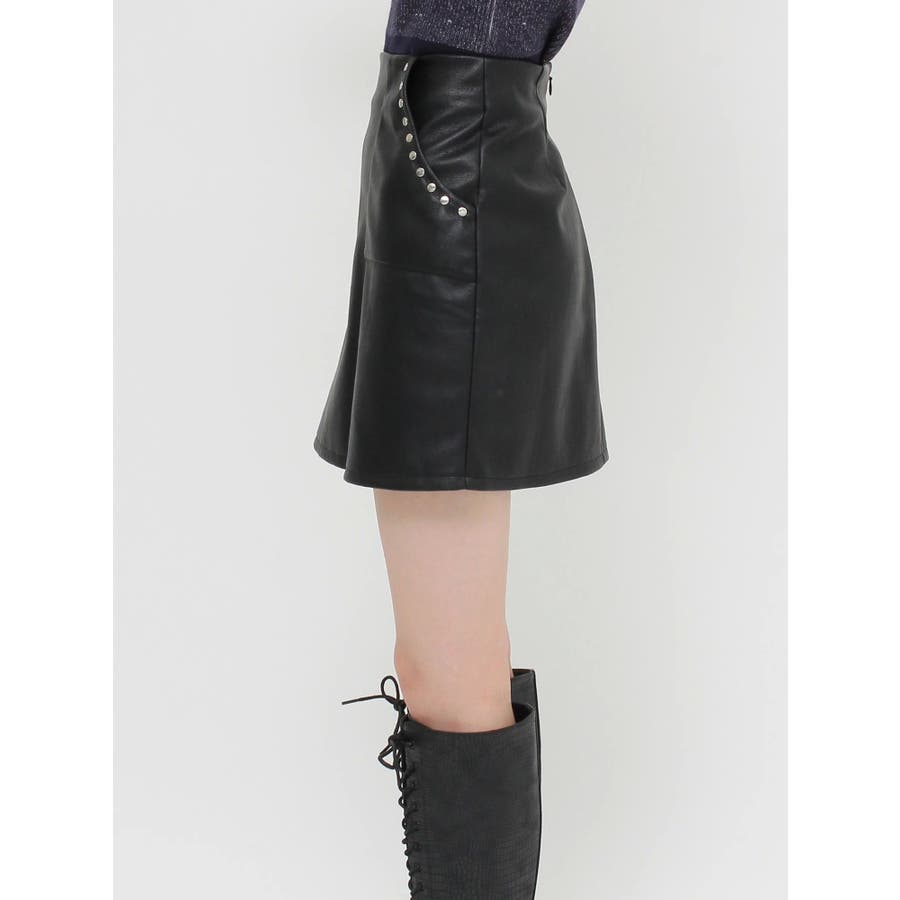 フェイクレザースタッズミニスカート