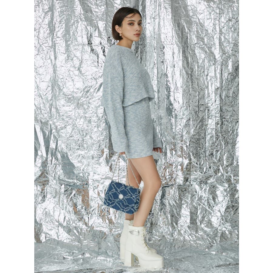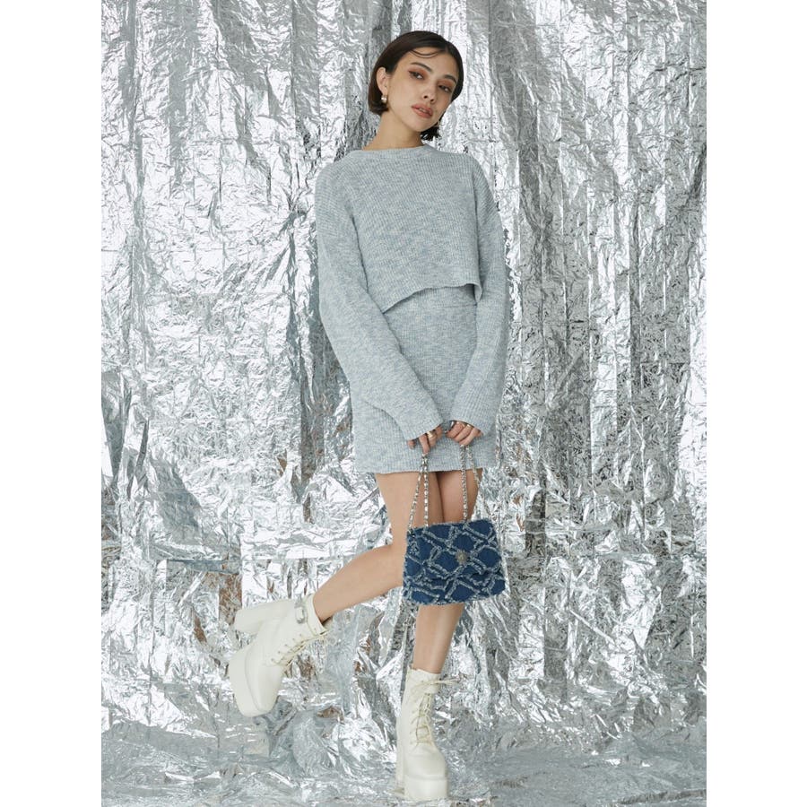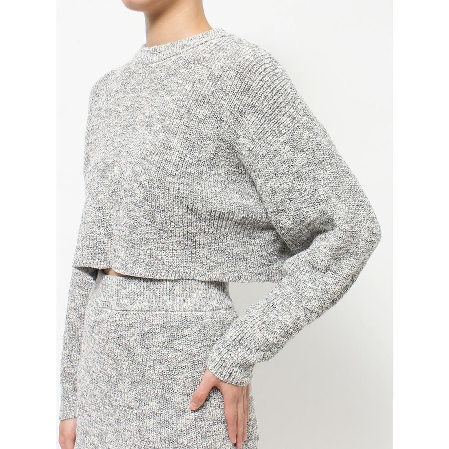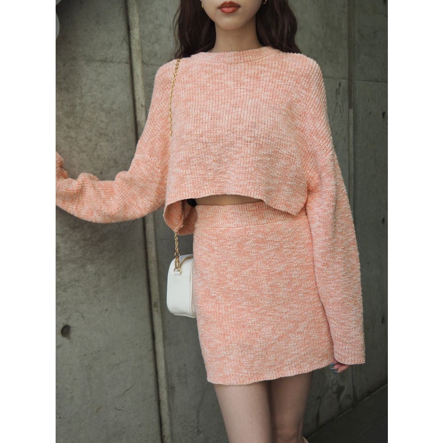 ホワイトベースのスラブの素材にカラーを配置したメランジニットは