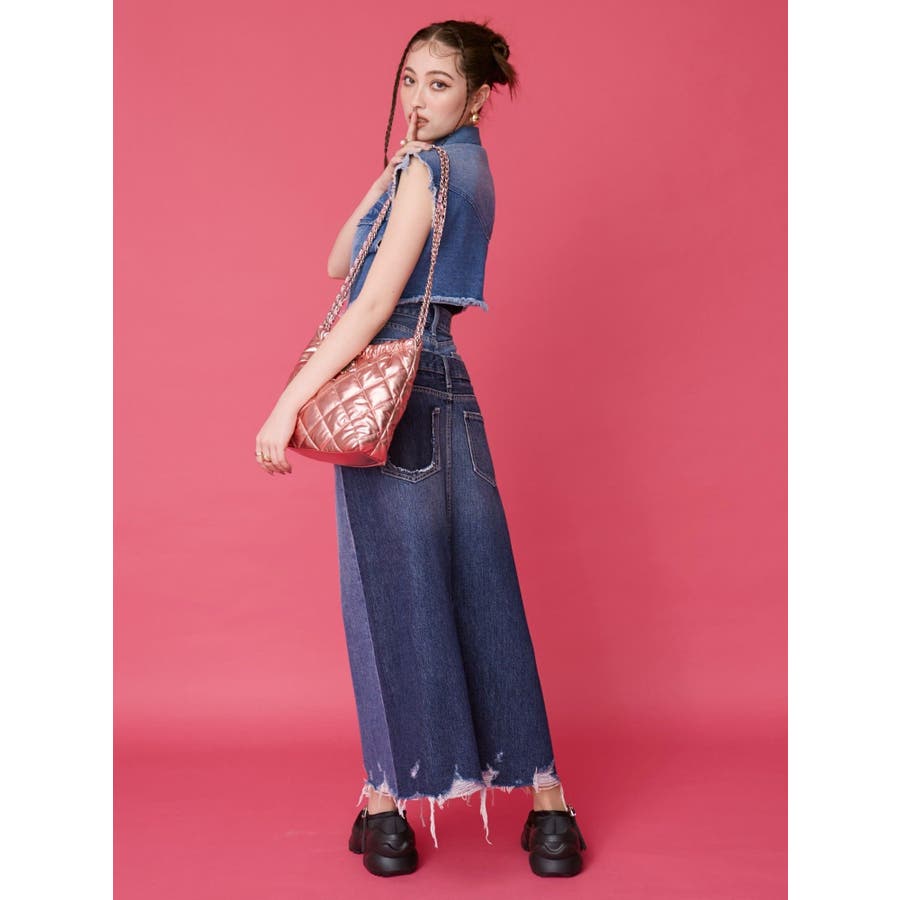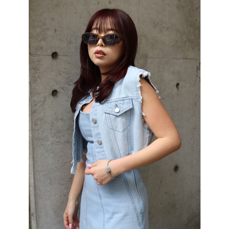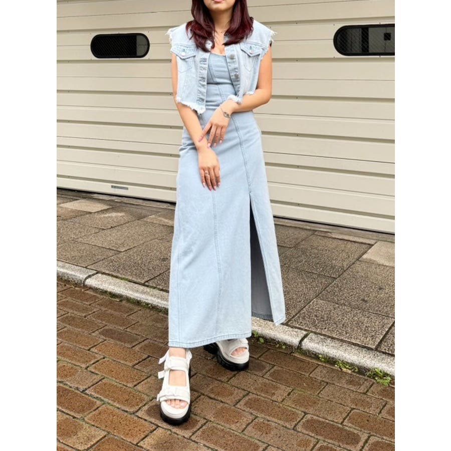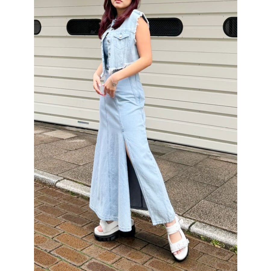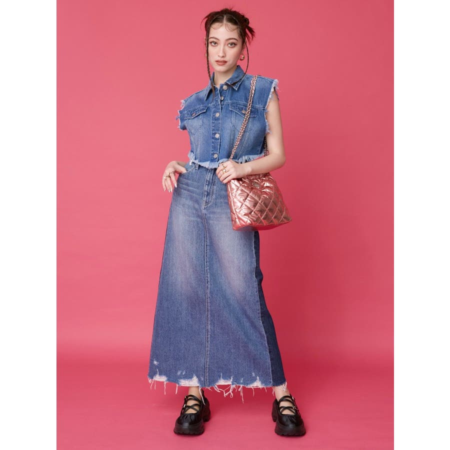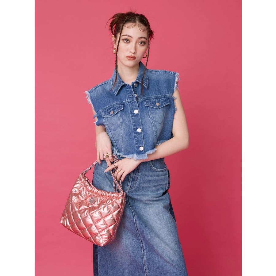 ■商品ポイント・そで&すそにトレンドのフリンジ○・コーディネートのプラスワンに!・デニムオンデニムにも取り入れやすい○・レイヤードでオールシーズン使える万能ITEM■商品について袖、裾のフリンジデザインがインパクトのあるデニムベストです。羽織としてもマルチに着回しできますが、クロップドなので1枚でTOPS風に着用したり、着回しの効く万能なブルゾンです。