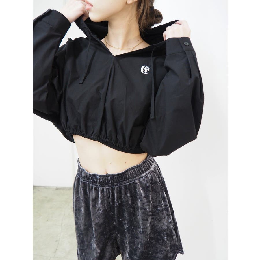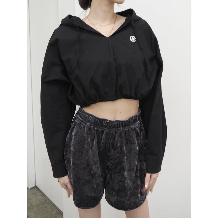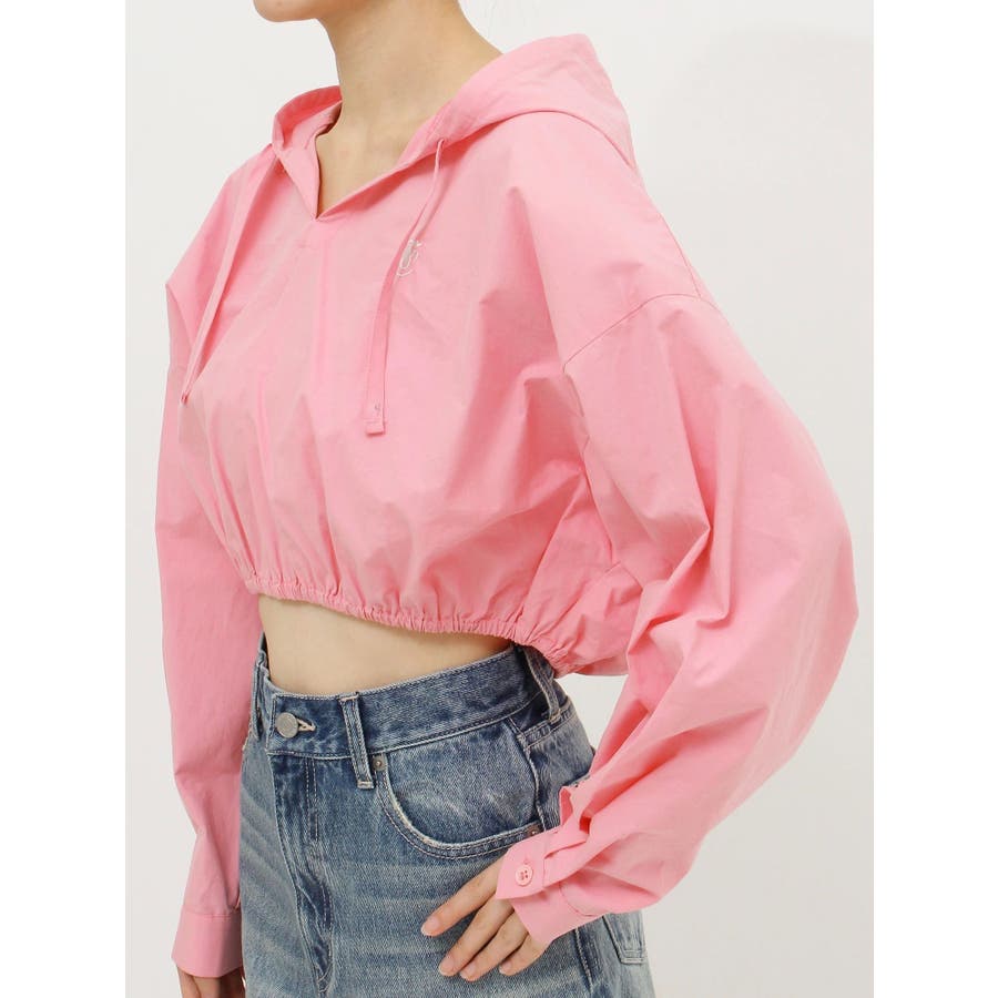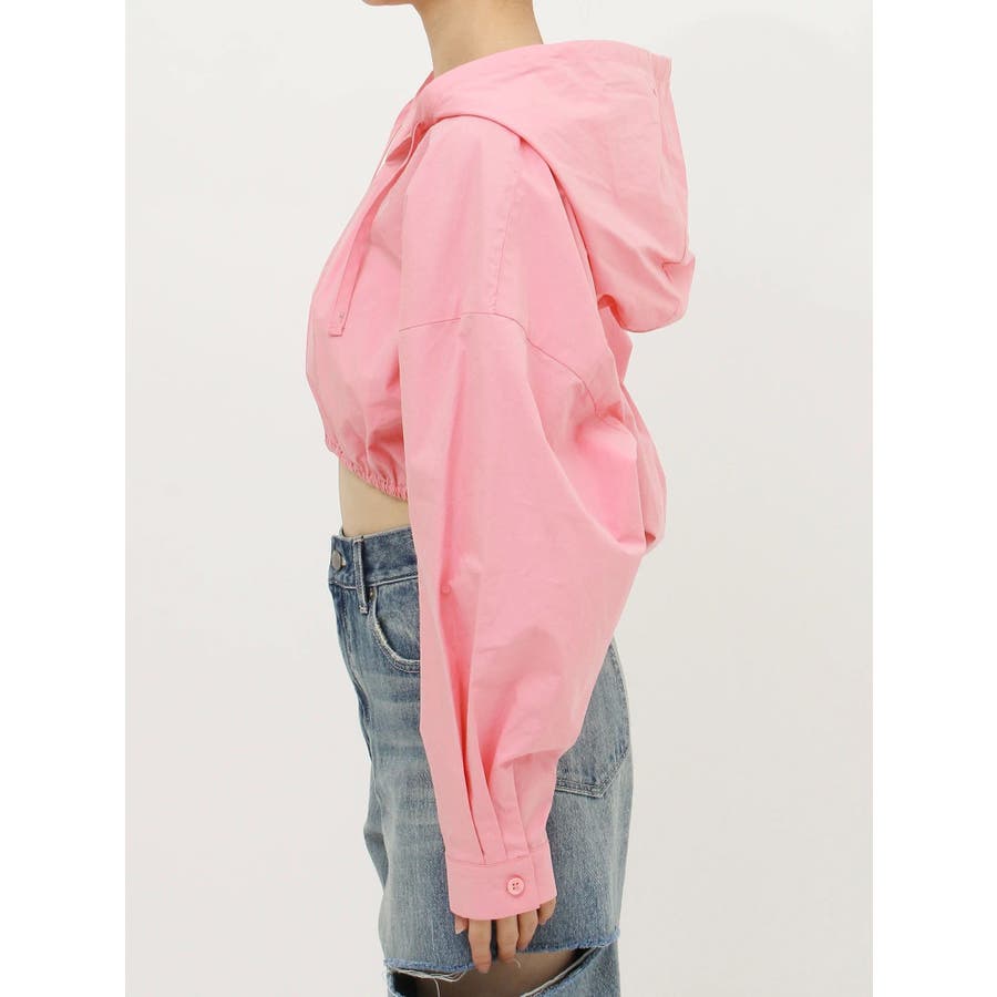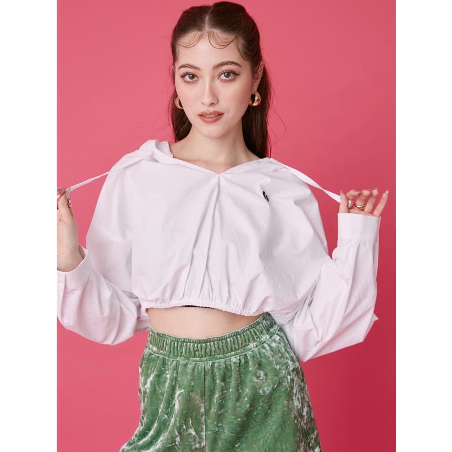 ■デザインシャツ素材の短丈トップスにフードをあしらったトップスです。一見シャツのようですが、フードをつけたことで一枚のTOPSとして着用でき、幅広いコーデに。ウエストにゴムは入っており、裾幅がきゅっと狭まることでスタイルUPも望めます。■スタイリングトレンドのカーゴパンツや、ルーズなサイズ感のボトムがおすすめ。異素材のベロア素材のパンツと合わせたスタイルも◎■おすすめスタイリングアイテム>>サマーベロアショートパンツ-------------- 透け感:なし裏地:なし 生地の厚み:薄手伸縮性:なし --------------
