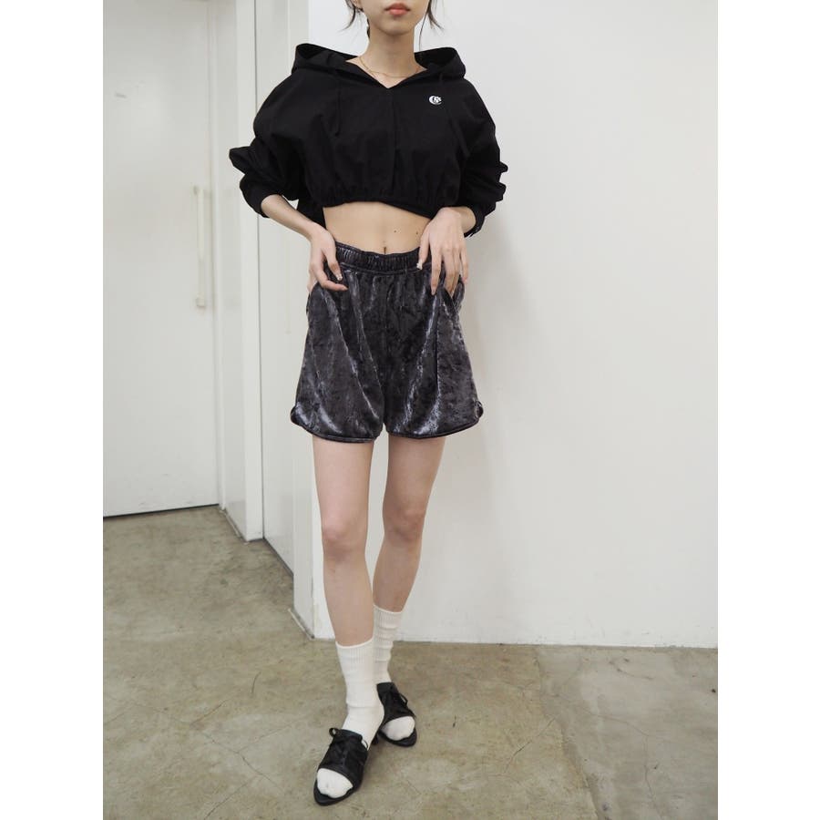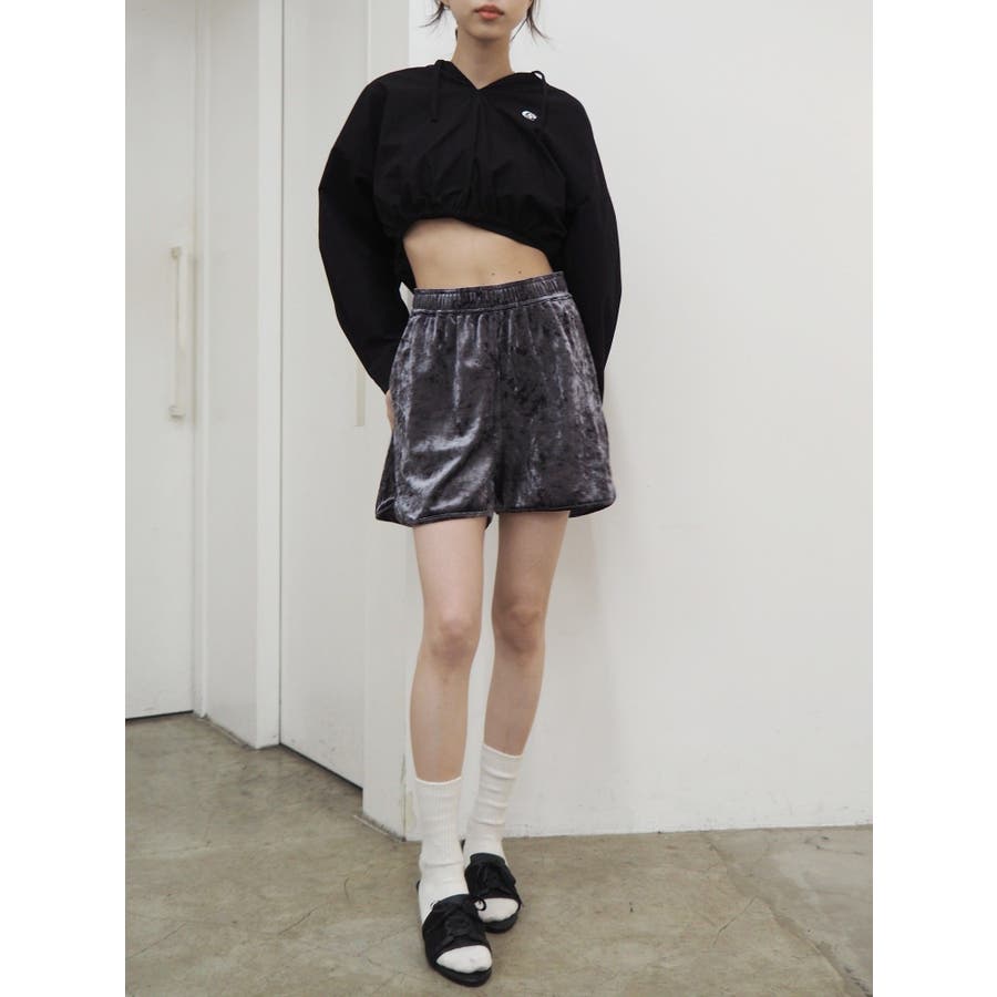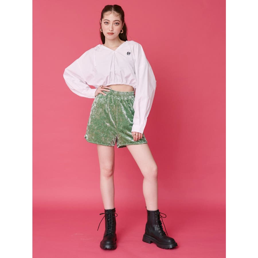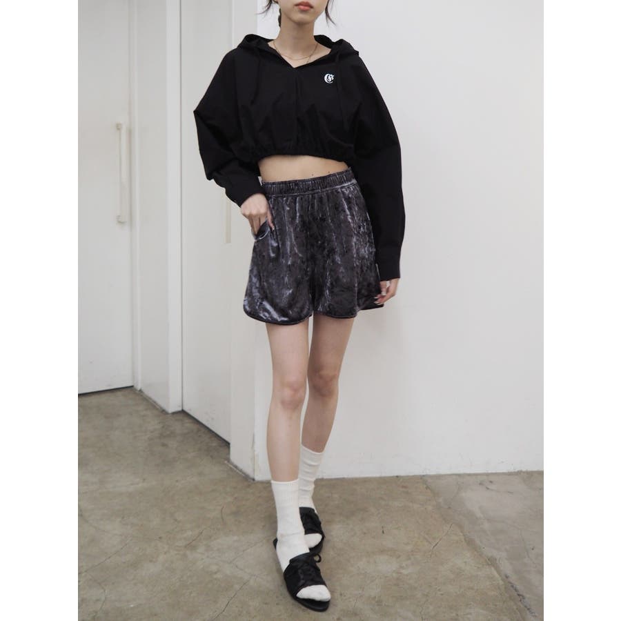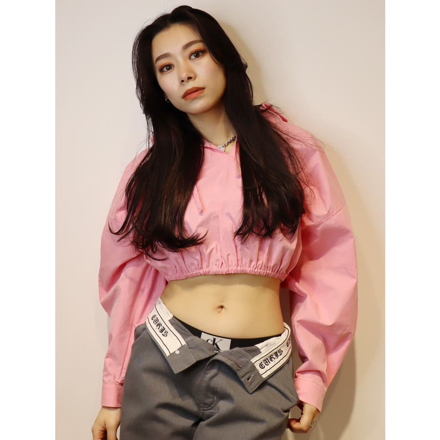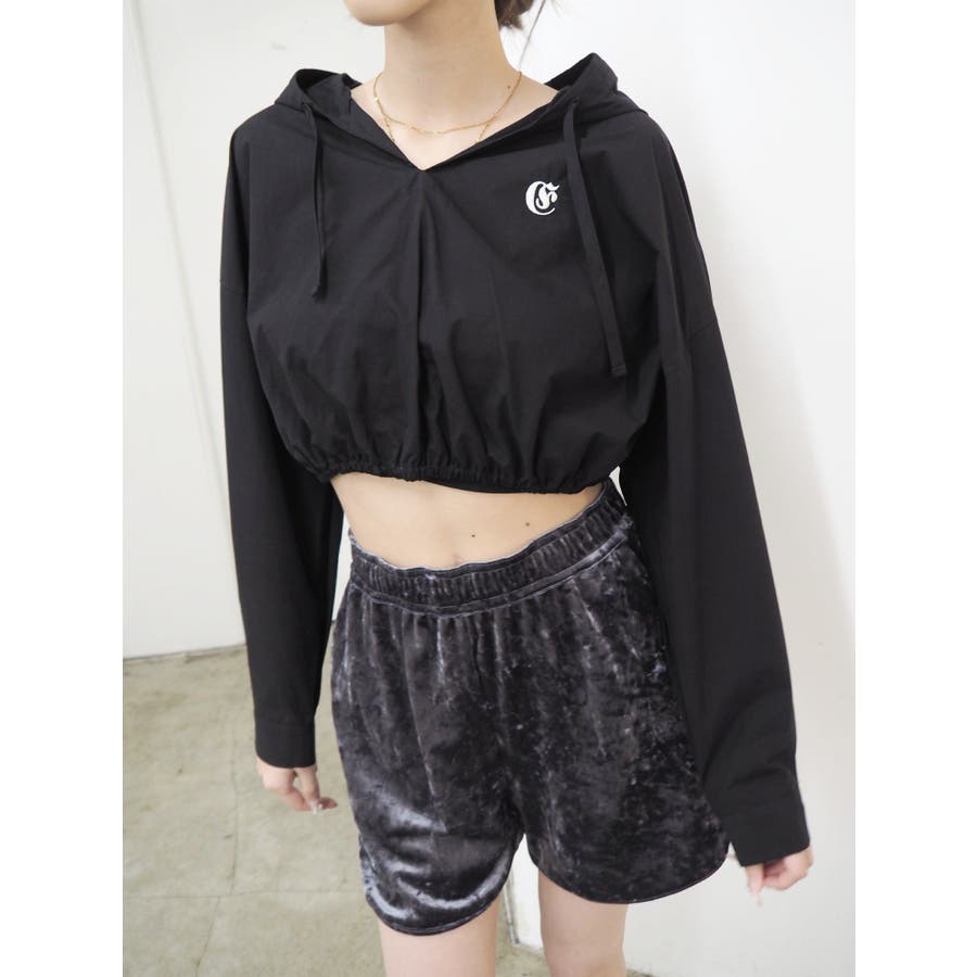 ■デザインシャツ素材の短丈トップスにフードをあしらったトップスです。一見シャツのようですが、フードをつけたことで一枚のTOPSとして着用でき、幅広いコーデに。ウエストにゴムは入っており、裾幅がきゅっと狭まることでスタイルUPも望めます。■スタイリングトレンドのカーゴパンツや、ルーズなサイズ感のボトムがおすすめ。異素材のベロア素材のパンツと合わせたスタイルも◎■おすすめスタイリングアイテム>>サマーベロアショートパンツ-------------- 透け感:なし裏地:なし 生地の厚み:薄手伸縮性:なし --------------