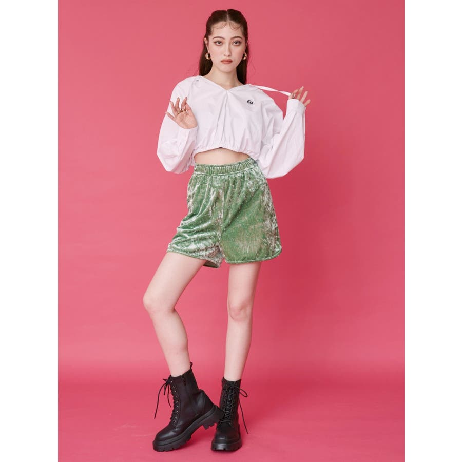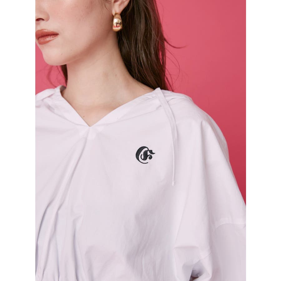 ワンポイントフードデザインクロップドシャツ