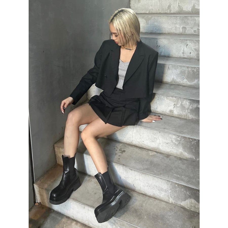 素材 | 表地:ポリエステル75% レーヨン18% ポリウレタン7% 裏地:ポリエステル100% |