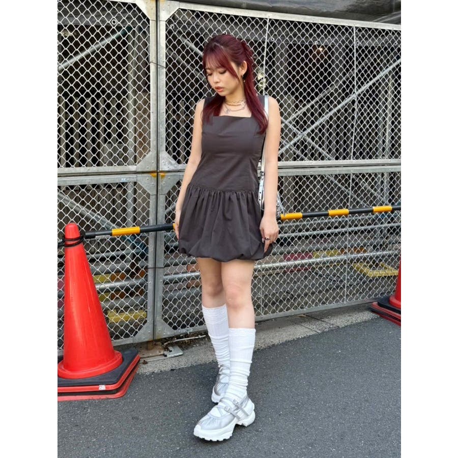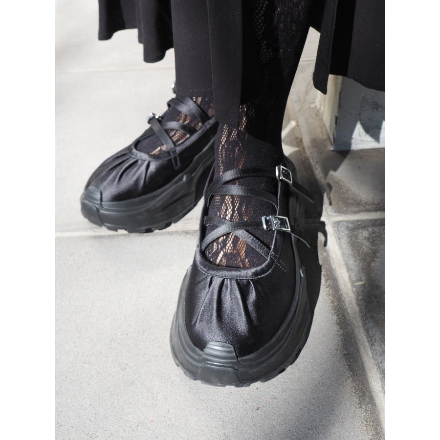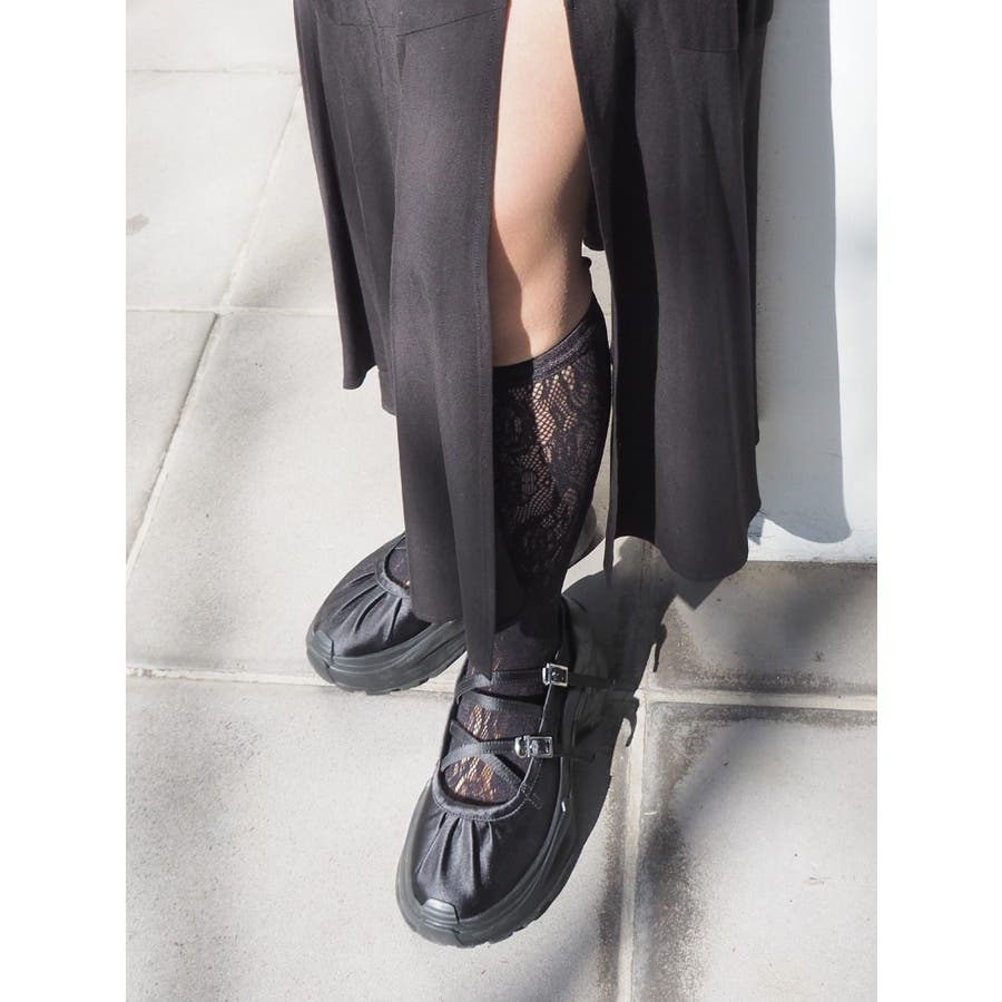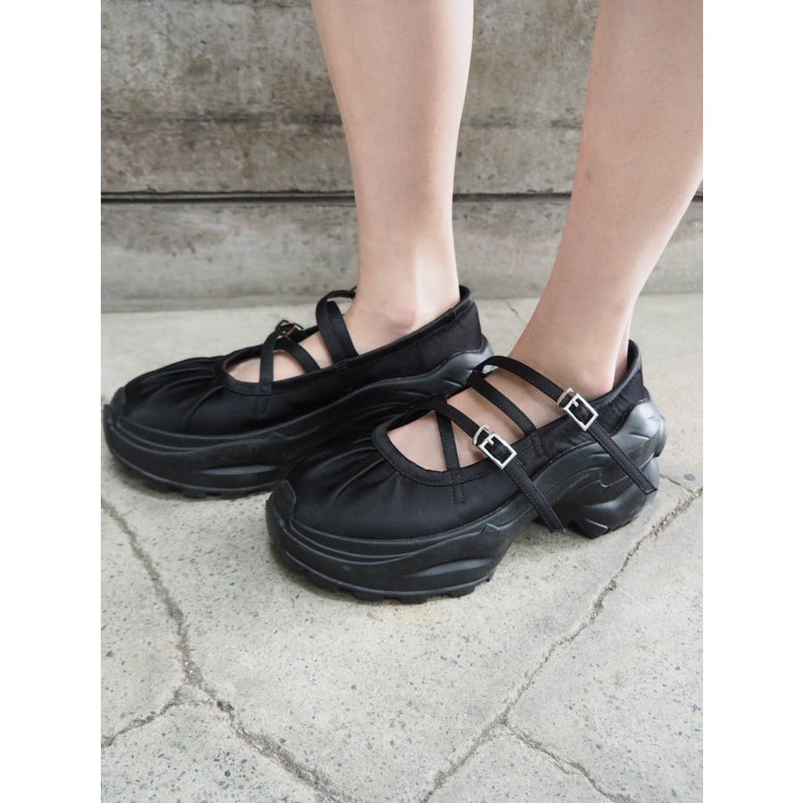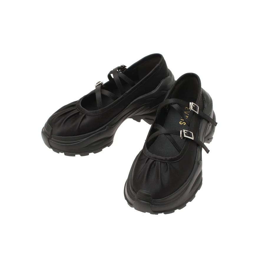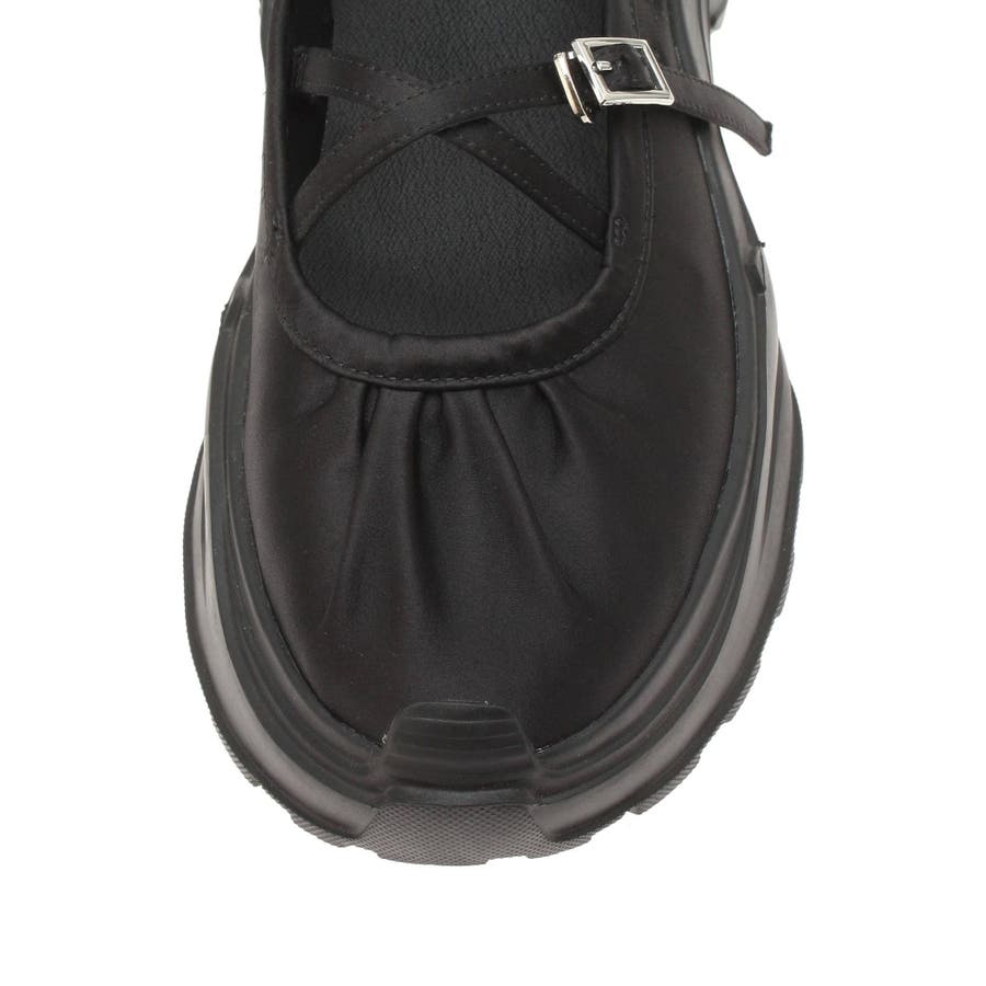今季トレンドのバレエシューズをモチーフにしたデザインのメリージェーンスニーカーです上から見えるデザインはバレエシューズっぽく女性らしい印象ですが、ソールはEVRISで人気のスポーティー感ある厚底を使用しておりカジュアルに履いて頂けます。レースアップデザインがポイントなので、シアーソックスやルーズソックスなど靴下合わせのスタイリングがオススメです。