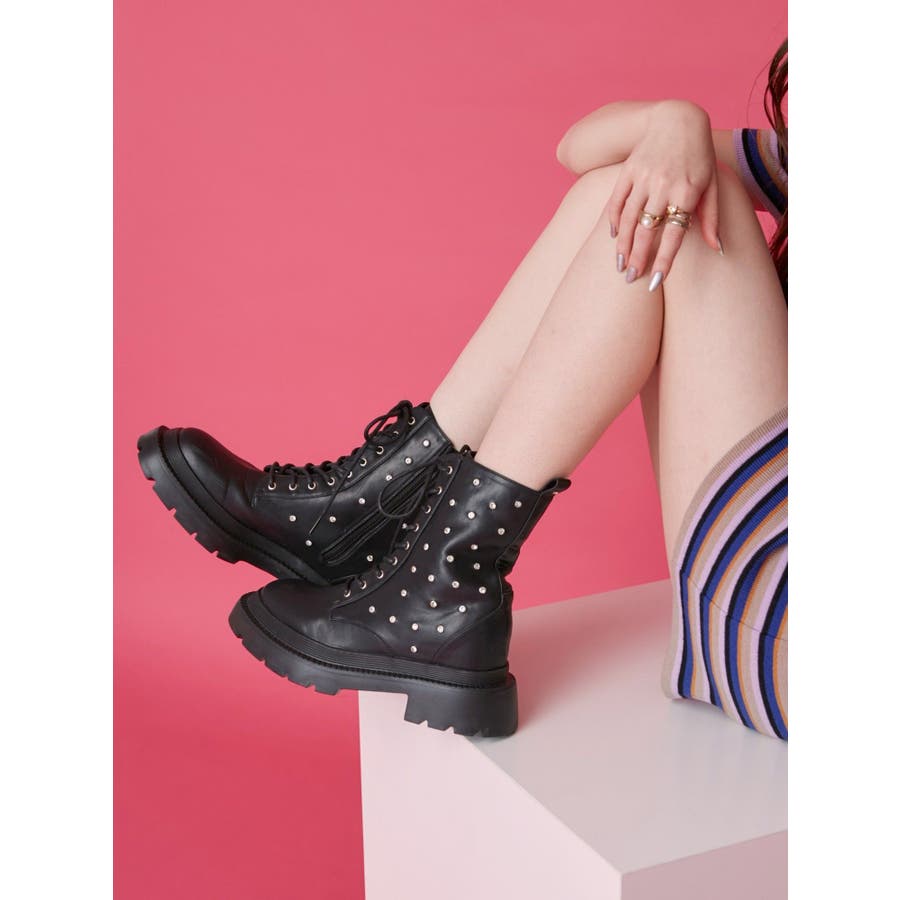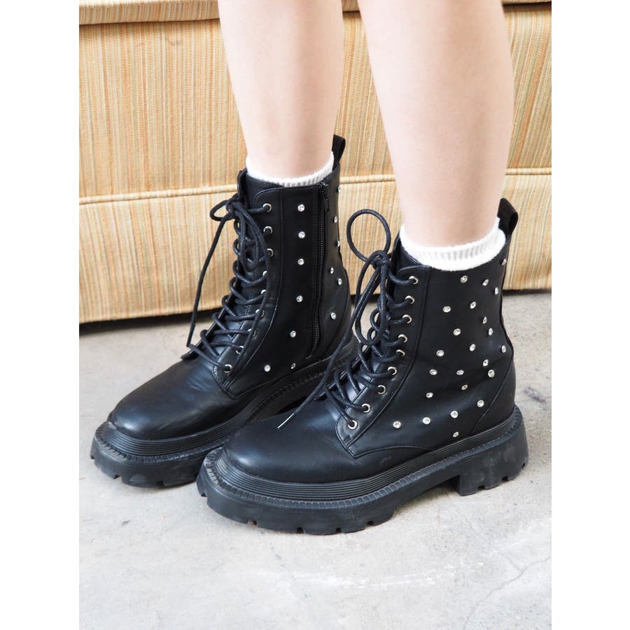 ビジューレースアップインソールワークブーツ