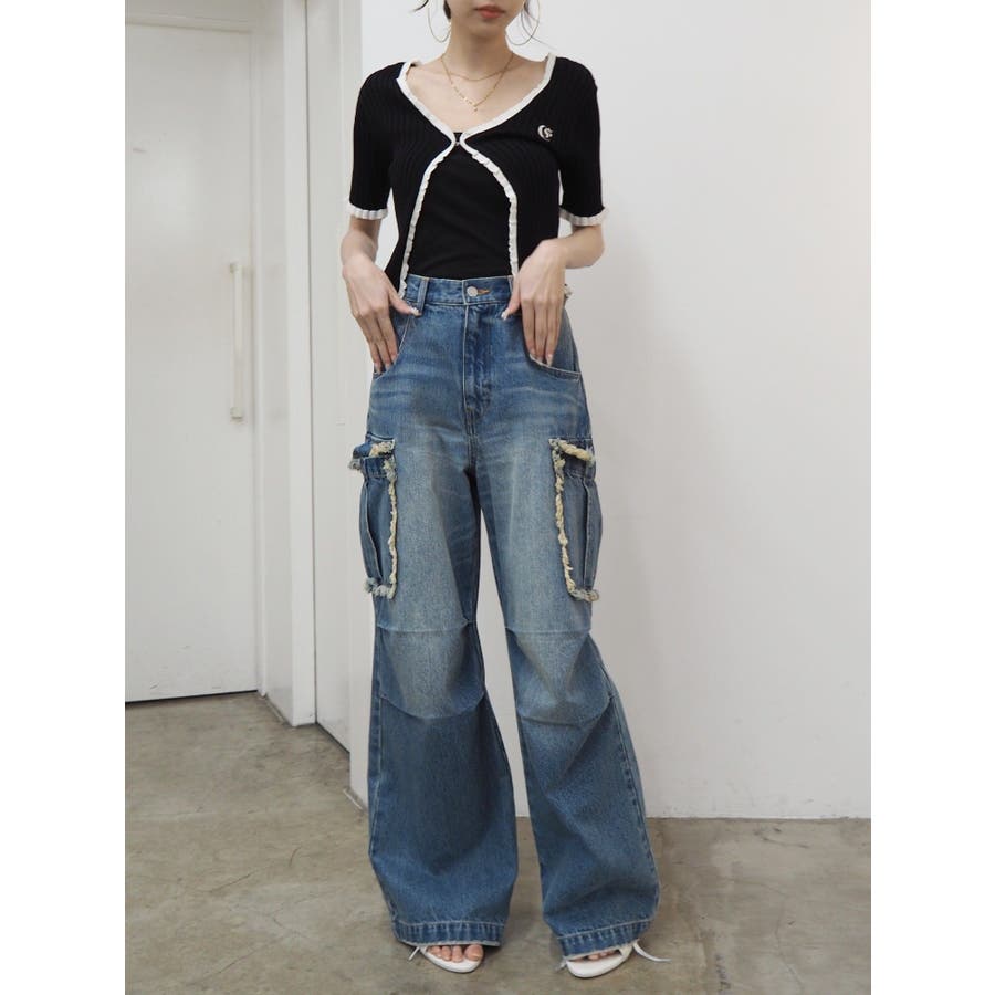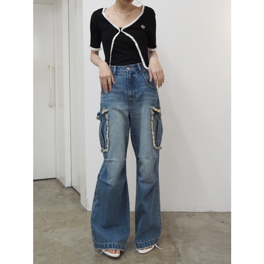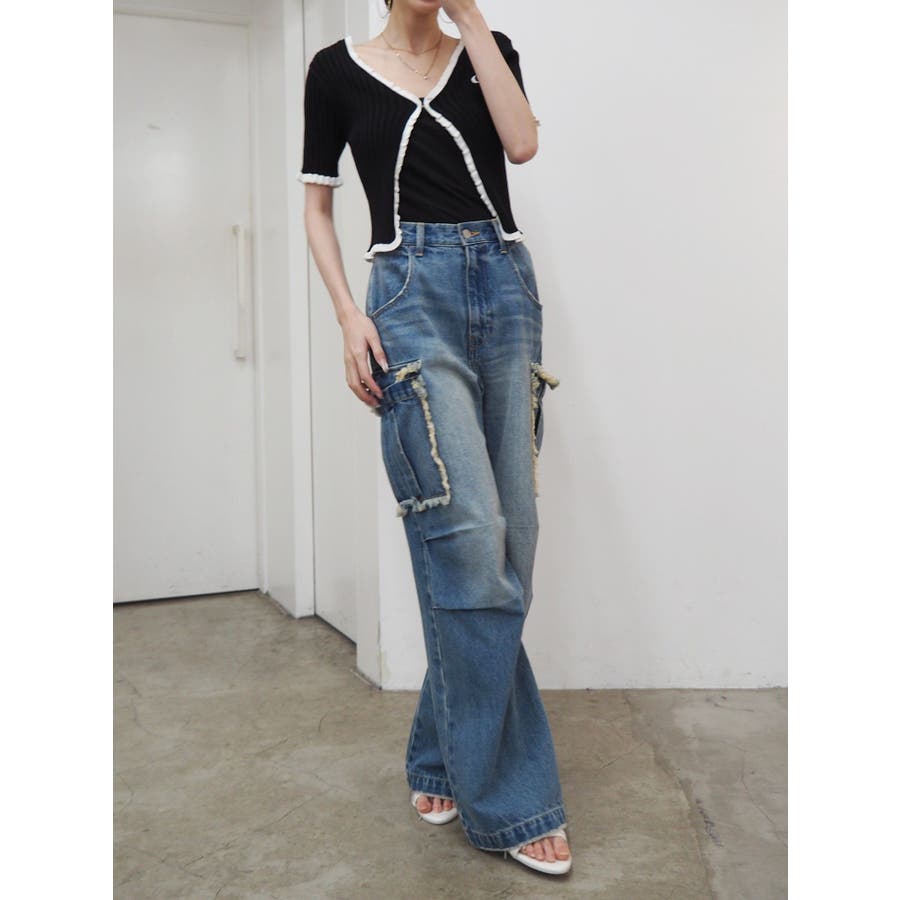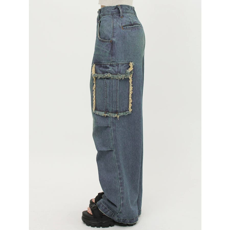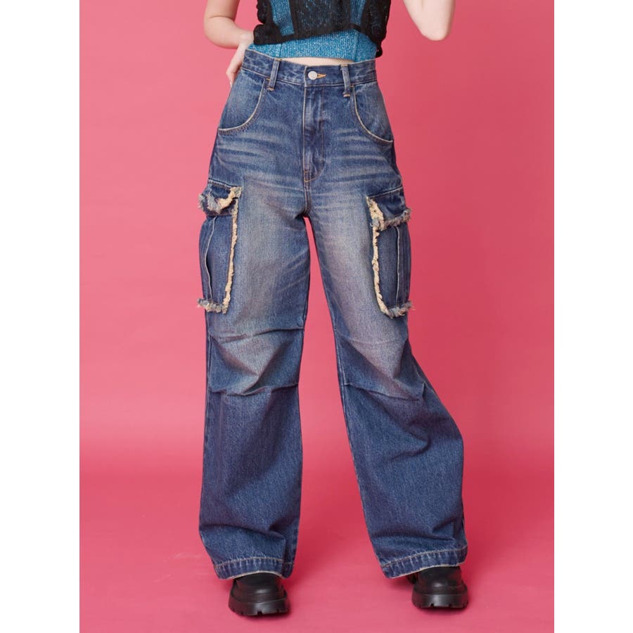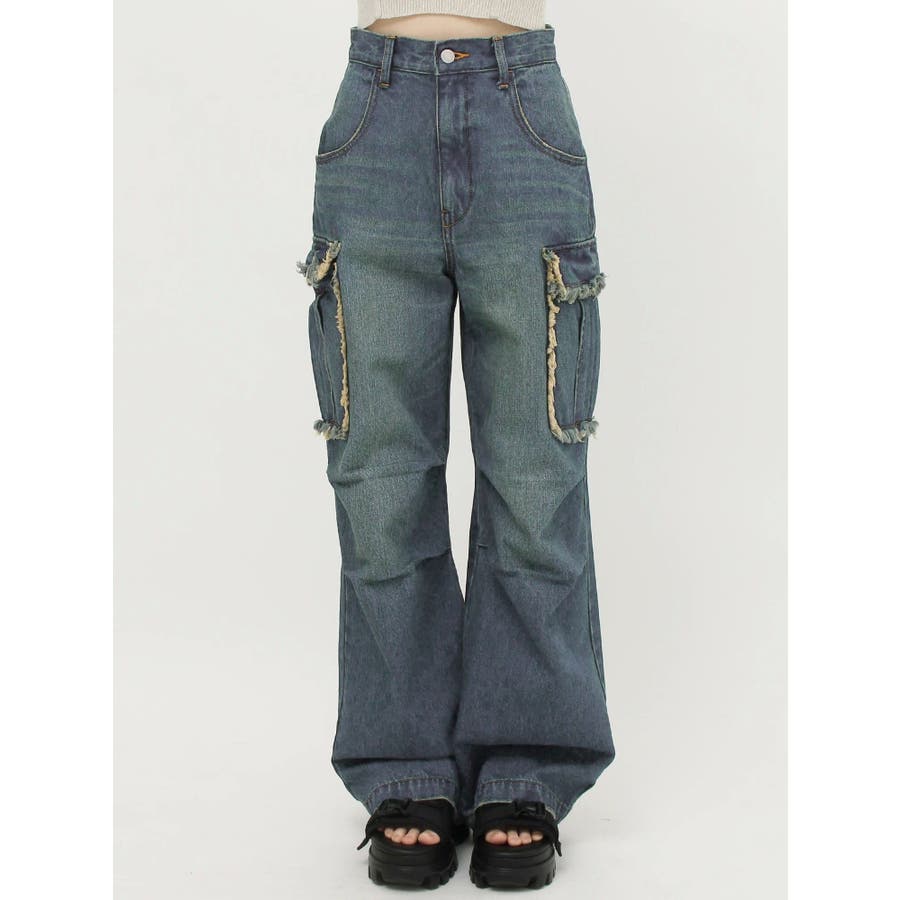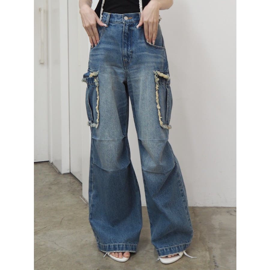 フリンジカーゴデニムパンツ