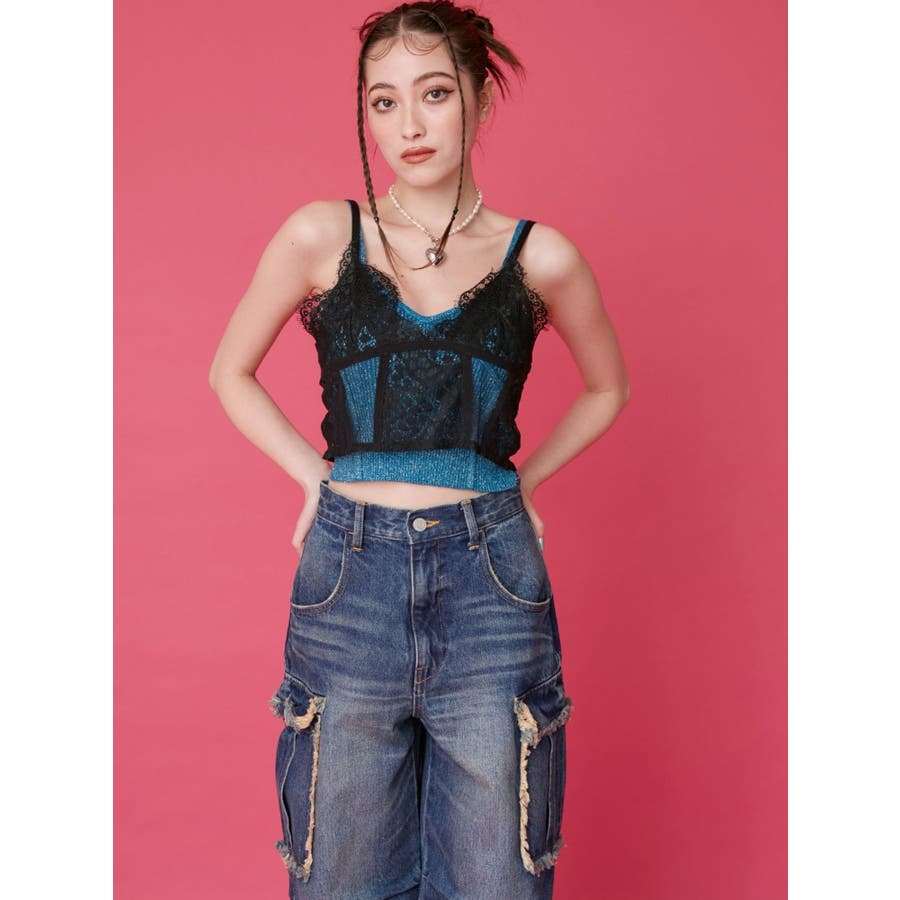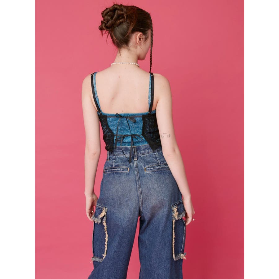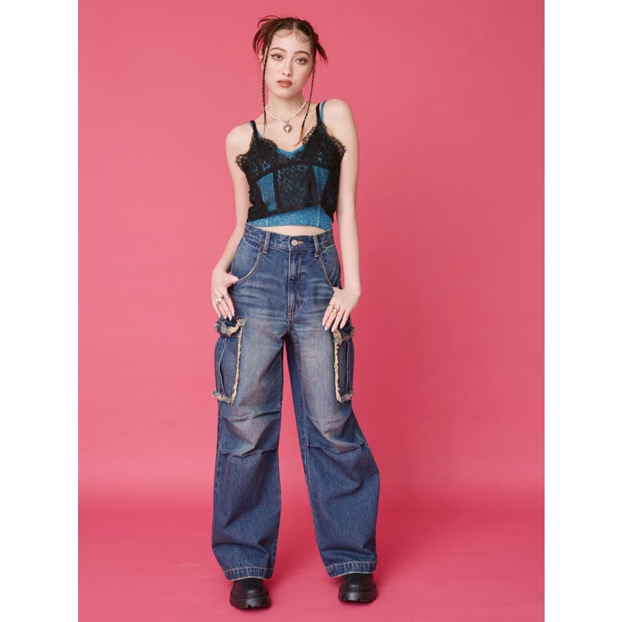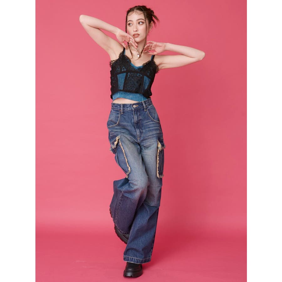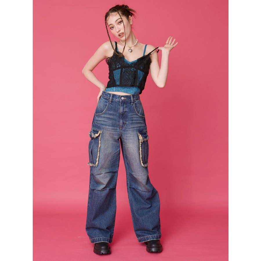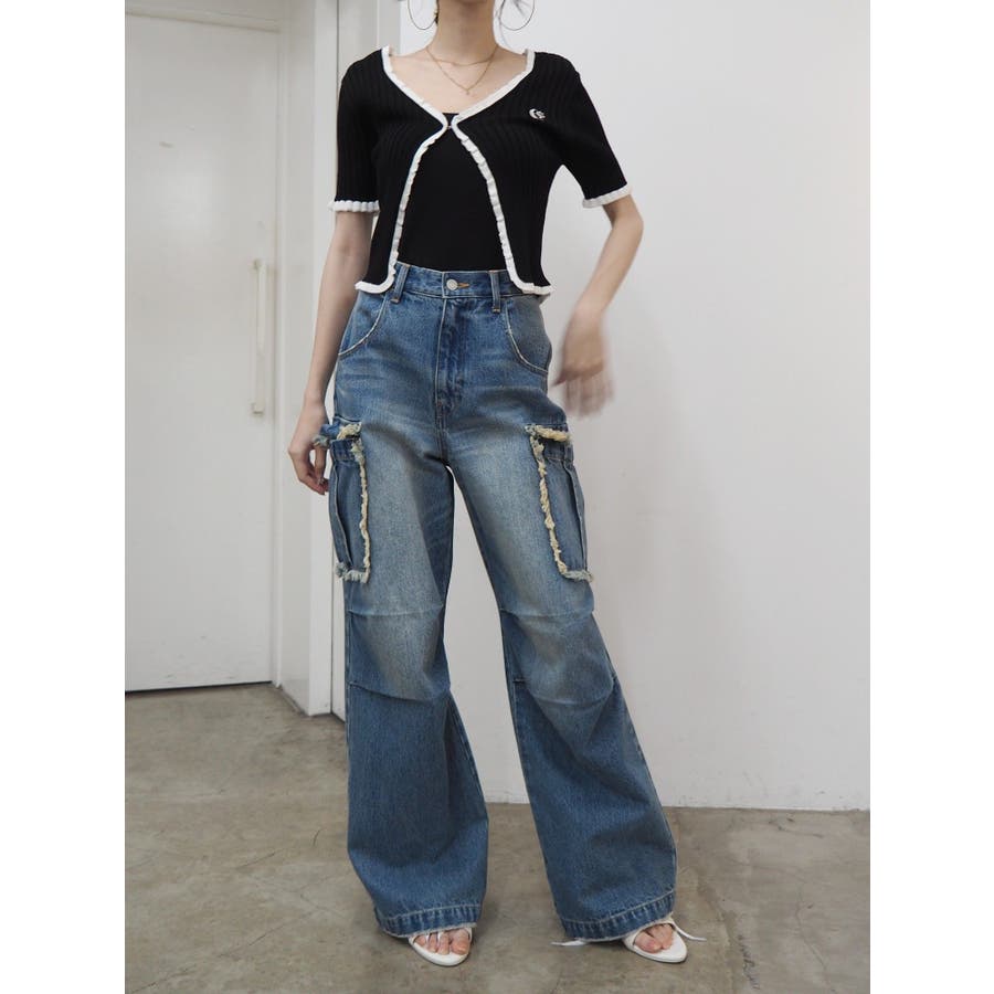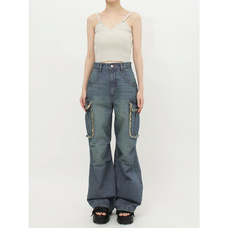 フリンジカーゴデニムパンツ