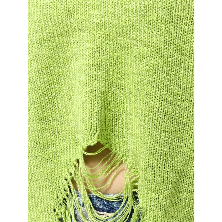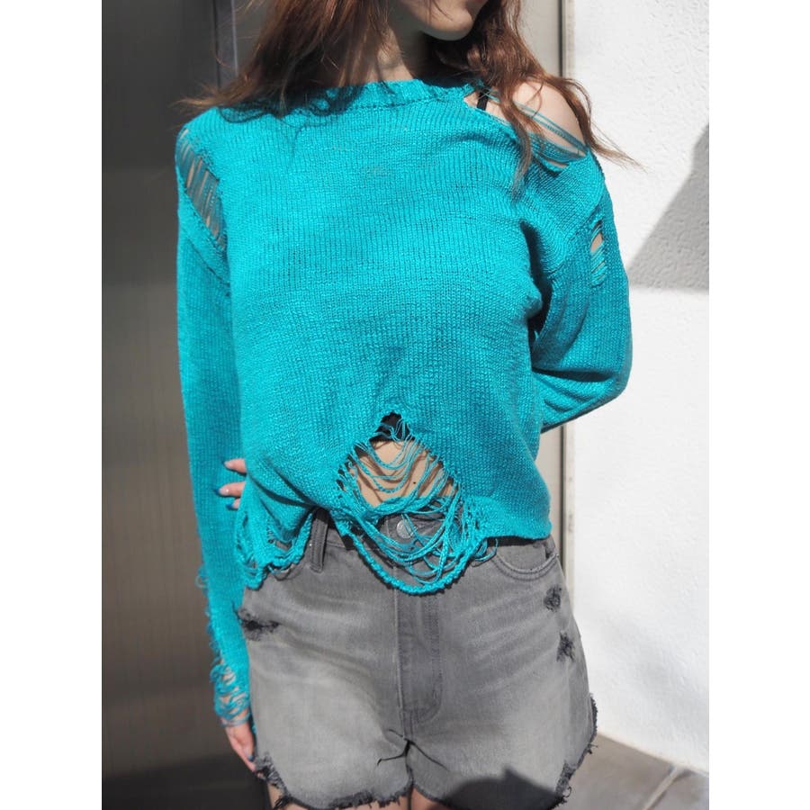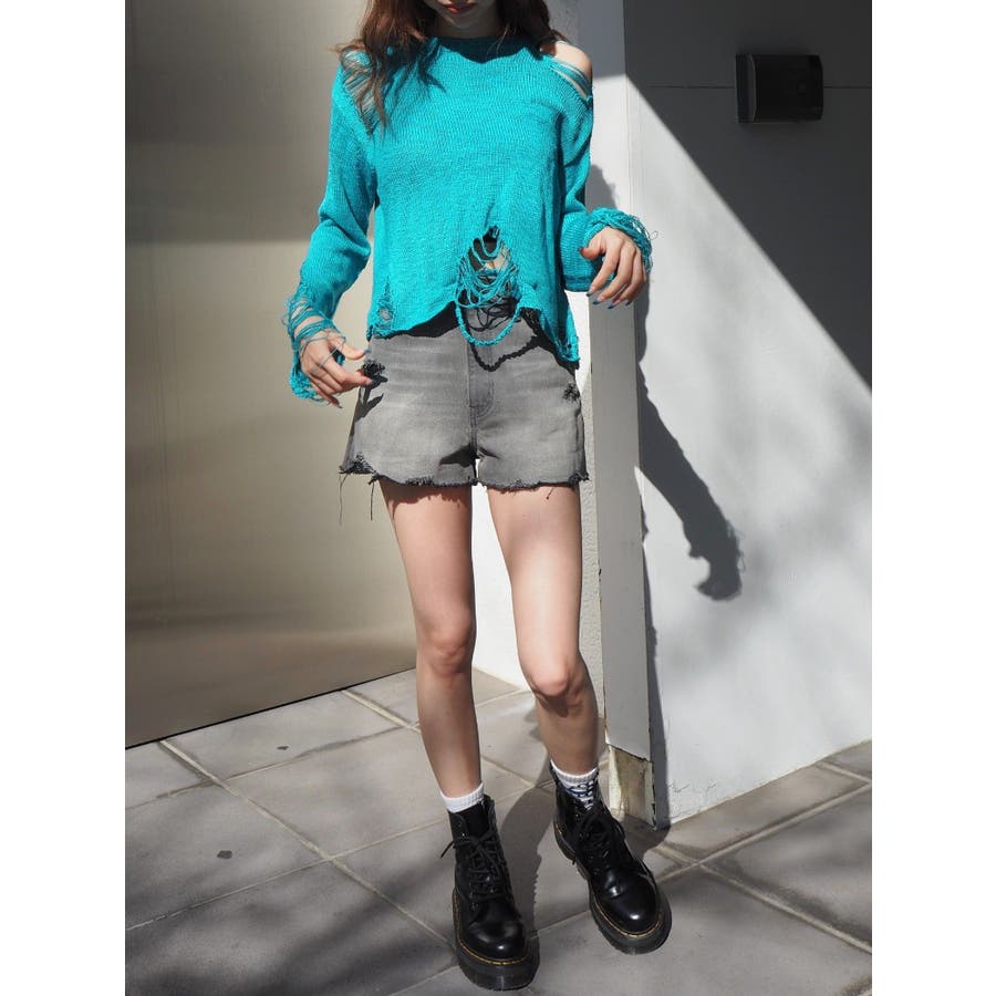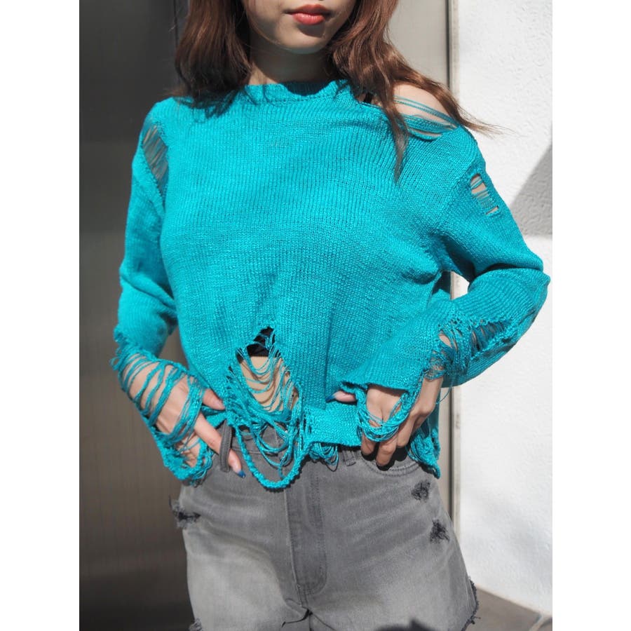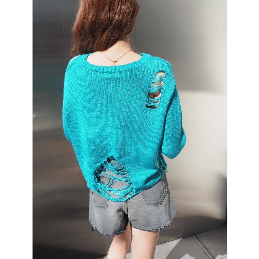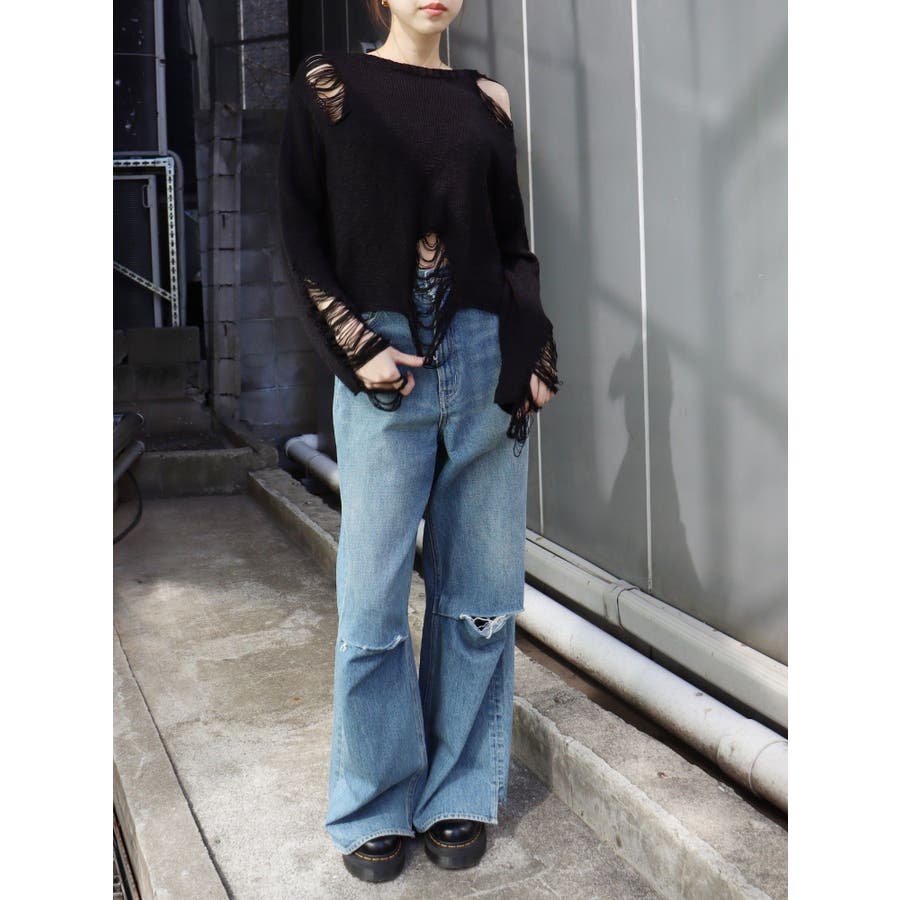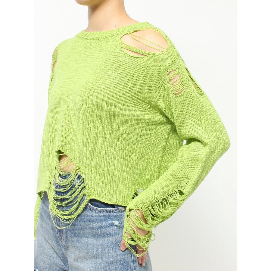 ■デザイン 昨年も大人気だった、全体的にダメージを施したニットトップスです。 エッジの効いた印象にするために、きつめにダメージが入っています。 ■スタイリング エッジのあるトップスにはシンプルなボトムやデニムがおすすめ。 ミニボトムでも雰囲気が出るのでコーデの幅が広がります。 ■おすすめスタイリングアイテム >>パラシュートパンツ-------------- 透け感:あり 裏地:なし 生地の厚み:普通 伸縮性:あり --------------